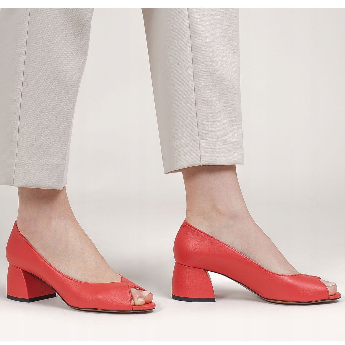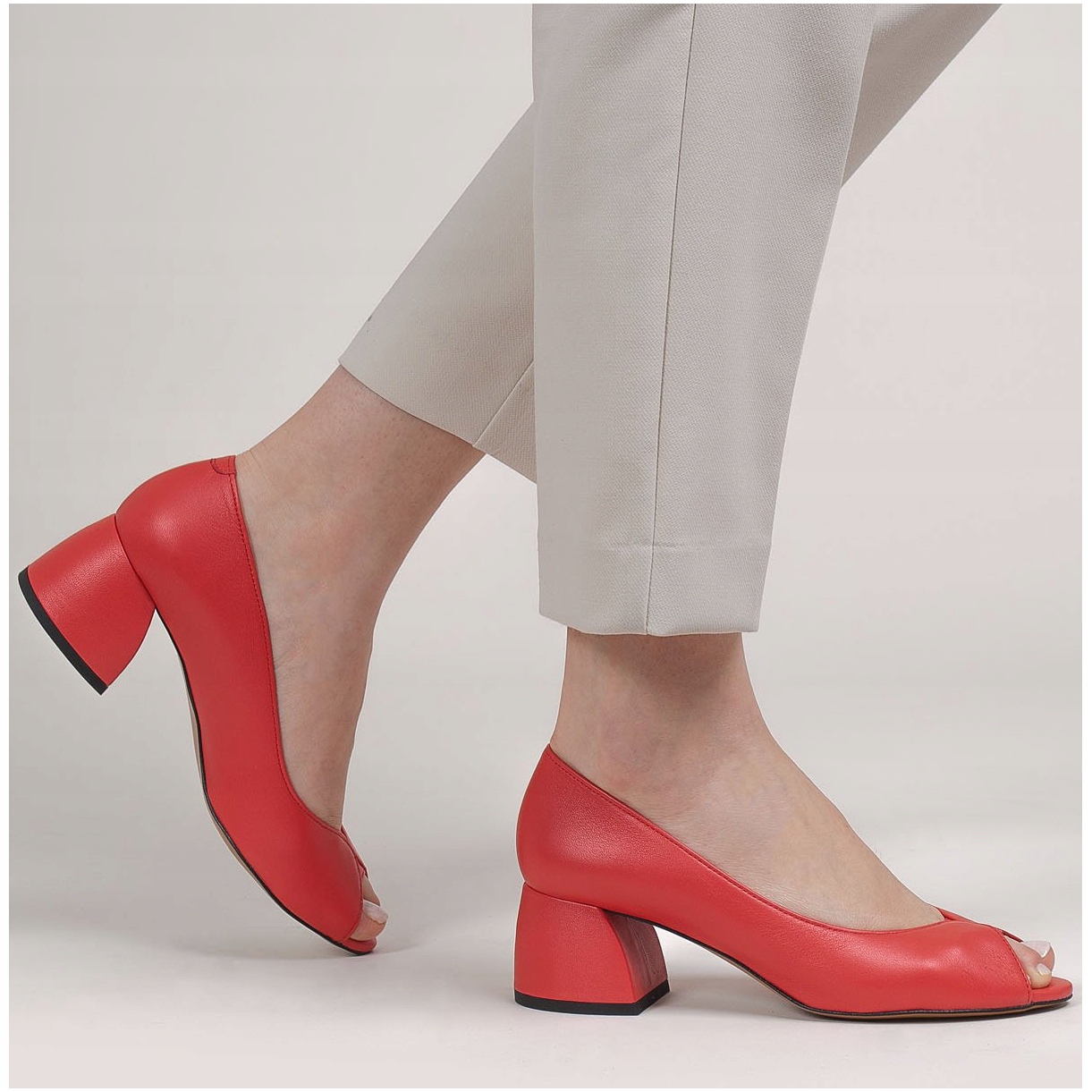 Made of high-quality, natural grain leather, whose intense red color attracts the eye and adds character to any styling, these pumps are durable and elegant. The interior of the footwear is lined with leather, which ensures the foot is comfortable even when worn for long periods of time.