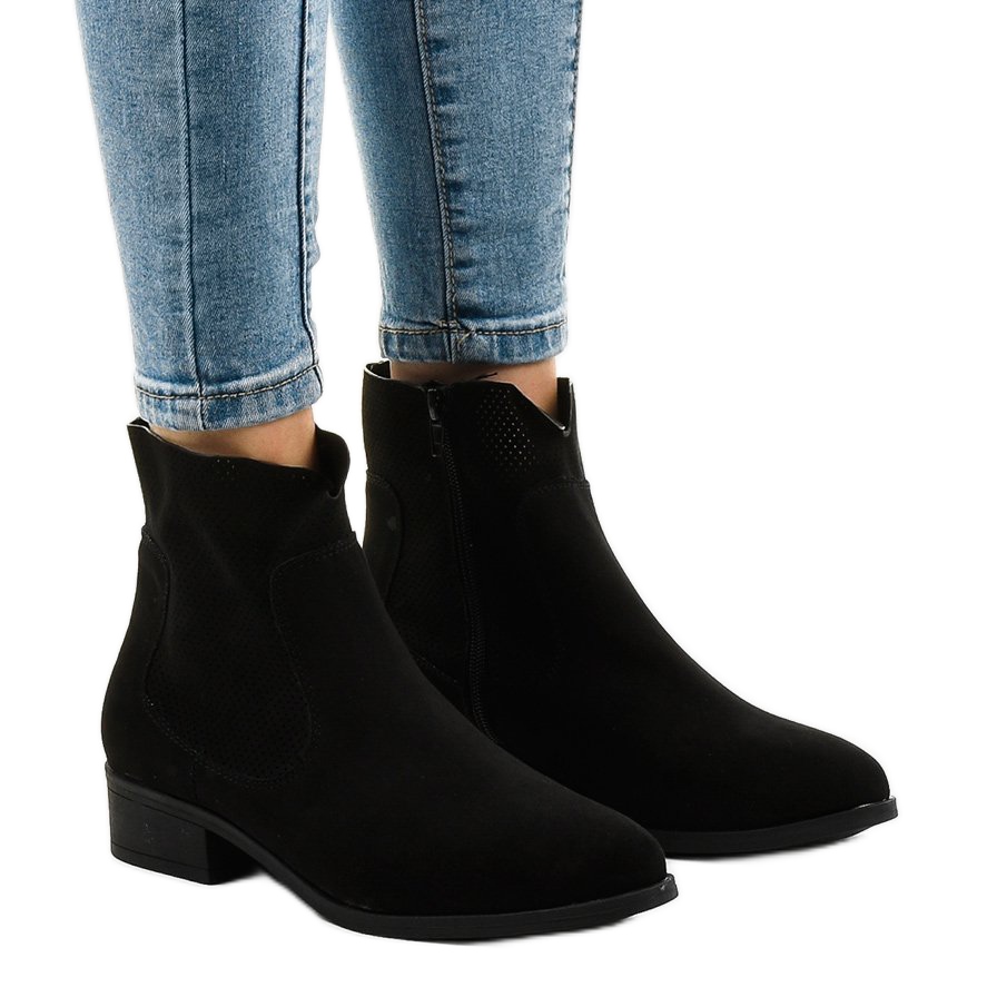 Discover a new level of comfort and style with the black 22M cowboy boots. These unique women's shoes, made of ecological suede leather, are the perfect choice for all lovers of fashionable accessories. Thanks to the height of the upper reaching above the ankle and openwork details, these boots combine modern design with functionality.