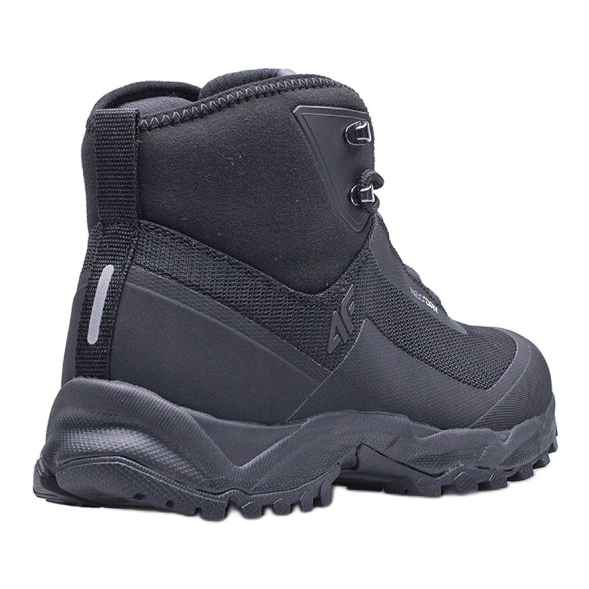 We present the 4F Hiker M D4Z20-OBMH101 20S men's shoes in an elegant black color, which are perfect for tourism and outdoor activities. These high sports shoes, designed for comfortable use, combine modern style and functionality, making them an ideal choice for active men.
