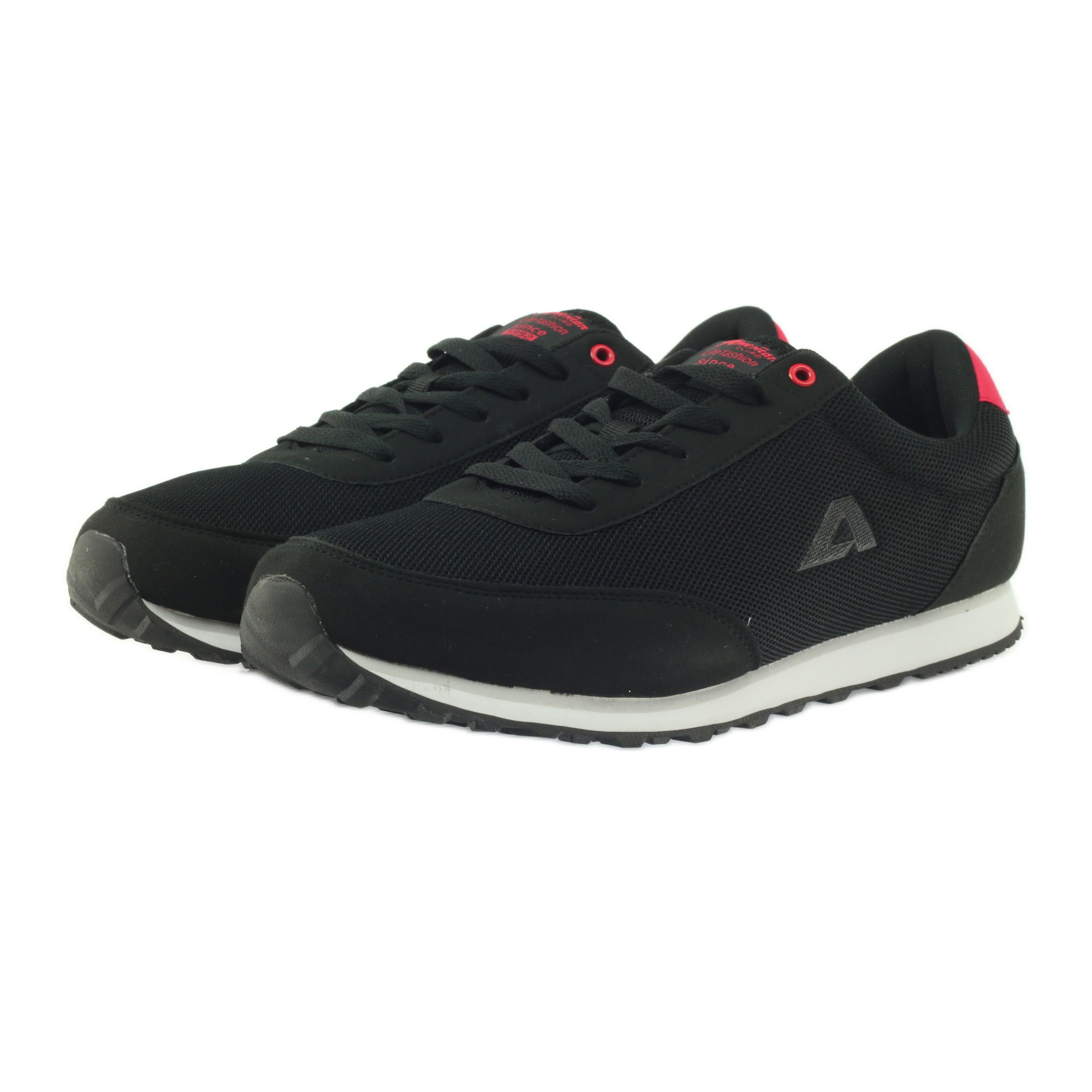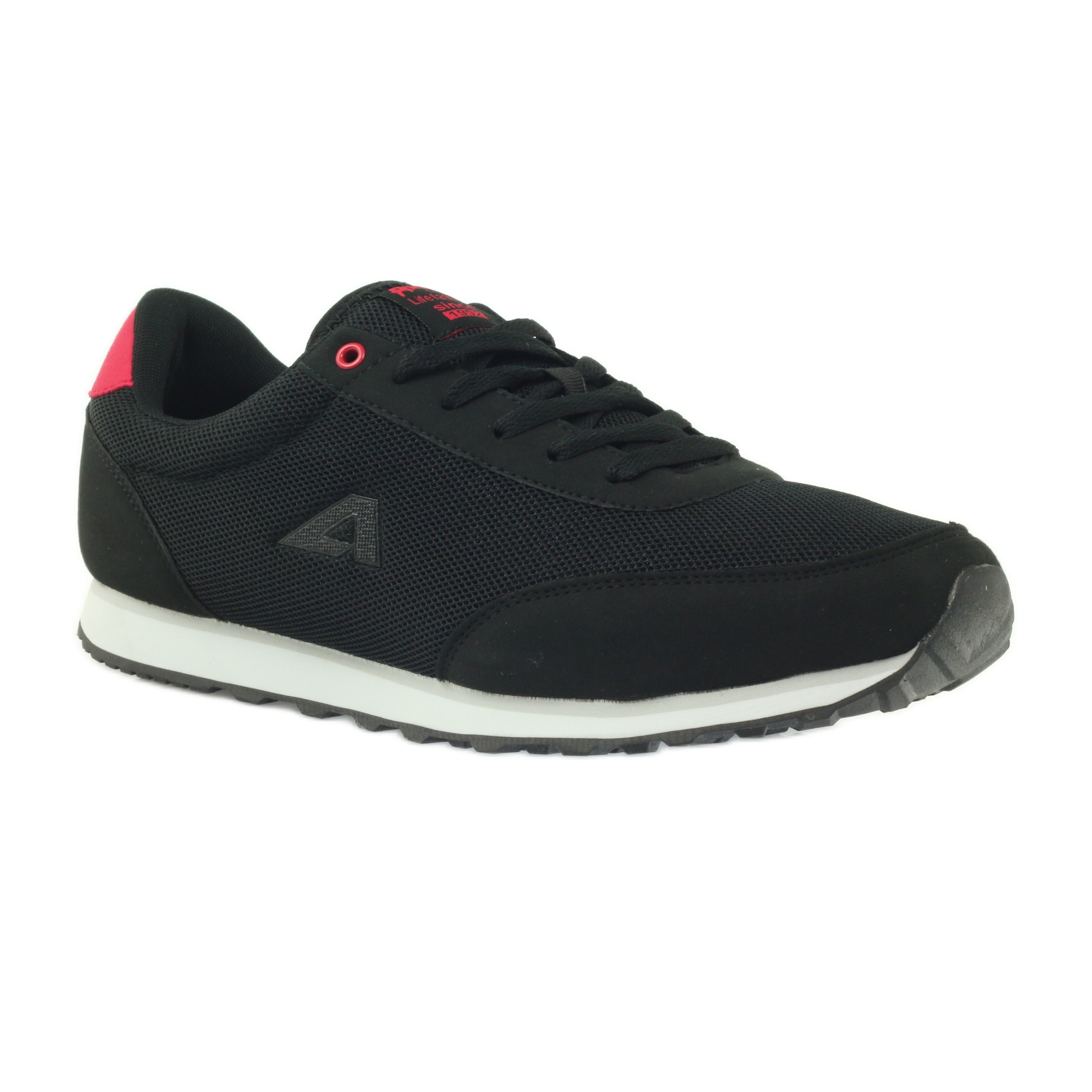 We present the American Club ADI jogging sports shoes, model 1756, in black with red accents. These modern sneakers are the perfect choice for active men who value comfort and style.