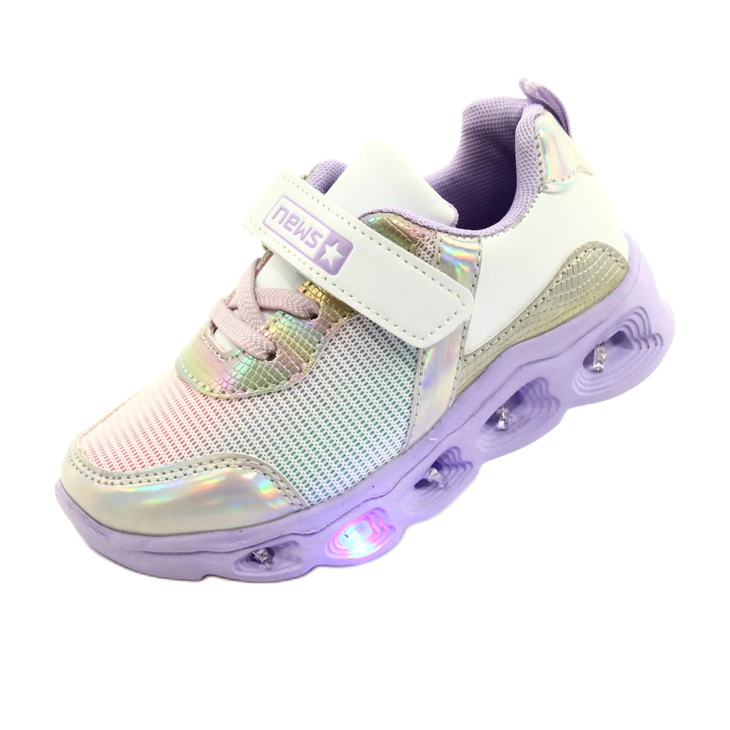 NEWS ADI Sports Shoes LED Glowing Velcro News 22DZ32-4837 Lilac-White violet pink silver