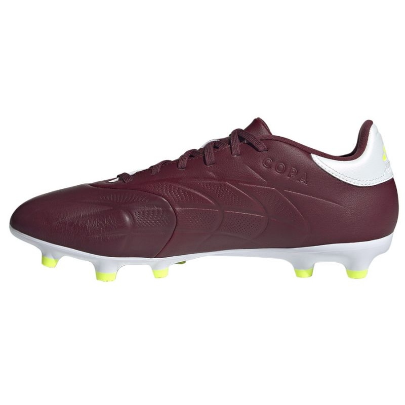 We present the men's football shoes Adidas Copa Pure.2 League FG M in a unique burgundy color, which are the perfect choice for every football enthusiast. Created for playing on natural grass, these traffic jams provide excellent adhesion and stability, which is crucial during dynamic actions on the pitch.