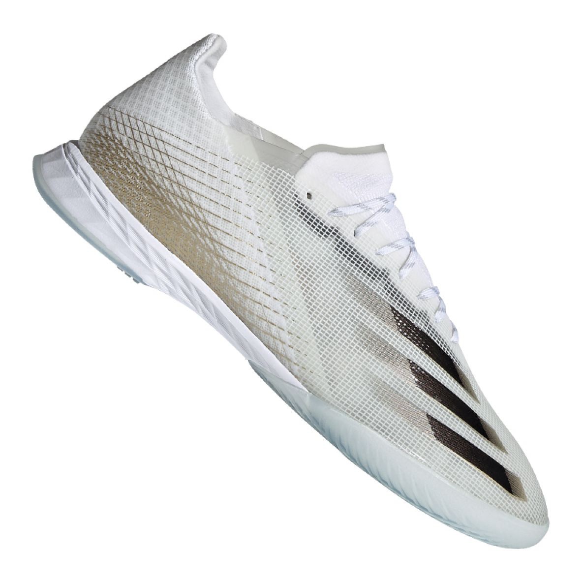 Introducing the adidas X Ghosted.1 IN football boots (model EG8171), which will become your inseparable companion during indoor games. These stylish indoor shoes in black, white and gold perfectly combine elegance with functionality, providing you with an advantage on the pitch.