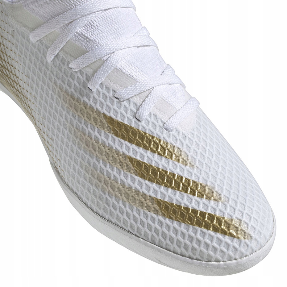 The adidas X GHOSTED.3 In EG8204 football boots in white are a great choice for any football fan who values both style and performance on the pitch. Part of the Inflight Pack collection, these men's indoor boots feature an asymmetrical lace construction, which allows for increased ball bounce and powerful shots.