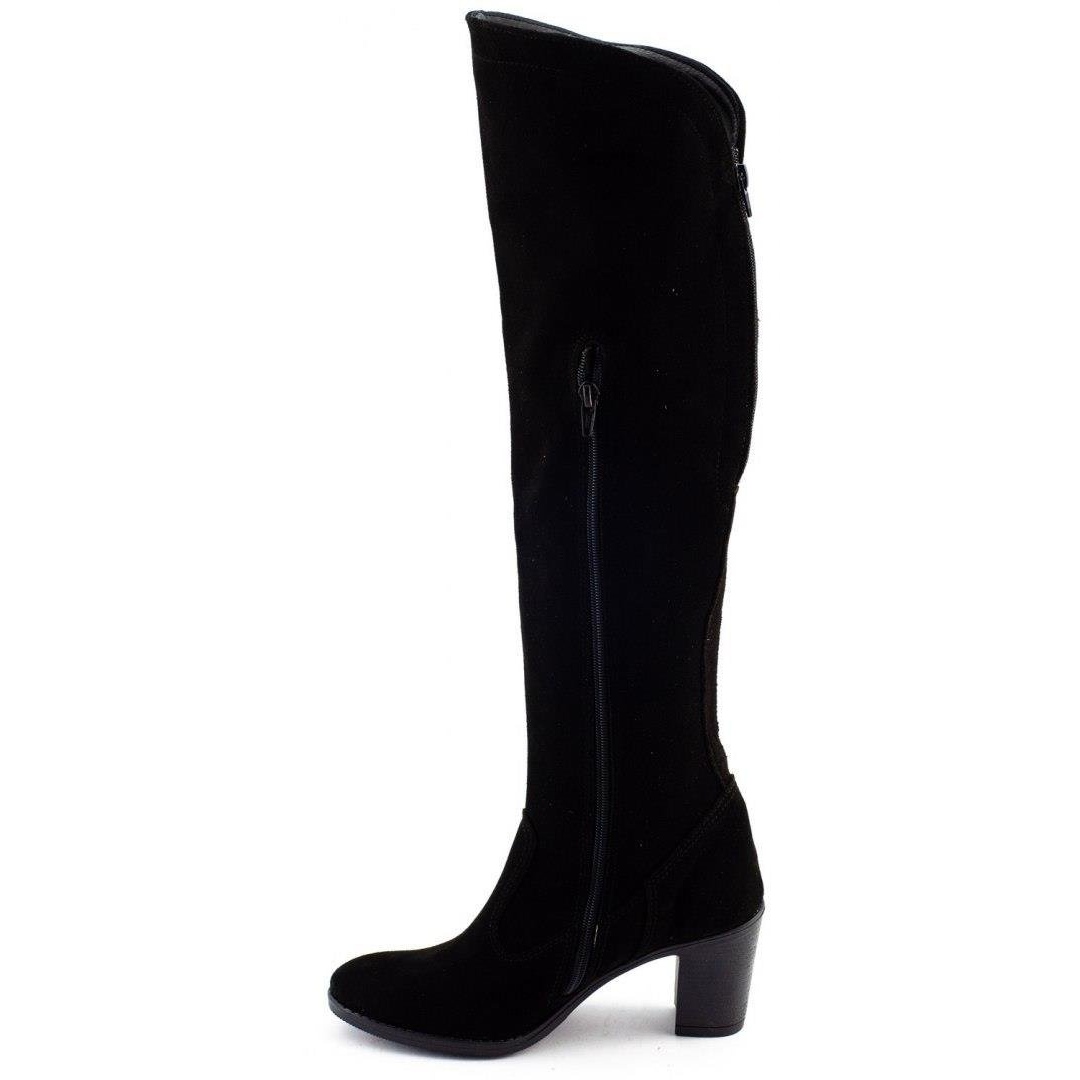 The model is equipped with a zipper on the side, which makes it easy to put on and take off, and the round toe adds a classic character. The total height of the boot is about 52 cm, which perfectly supports the legs, and its universal black color makes it a great match for both trousers and various types of skirts or dresses.