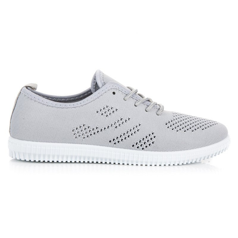 Airy fabric sneakers in grey are the perfect choice for modern women who value comfort and style. These low shoes, made of high-quality fabric, provide excellent ventilation, making them ideal for warm days. The round toe and lace-up fastening guarantee comfort and easy adjustment to the foot.