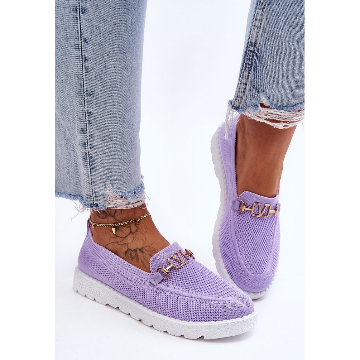 PM1 Women's slip-on Slip-On "Alena" sneakers-purple with an ornament