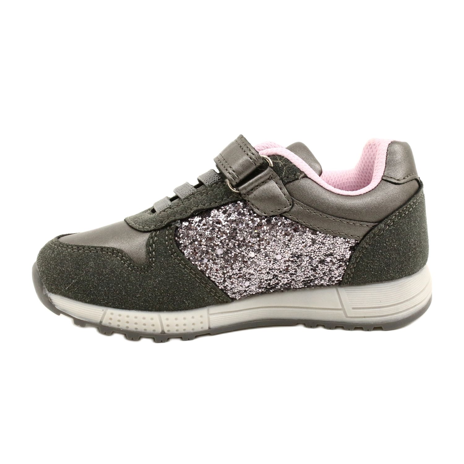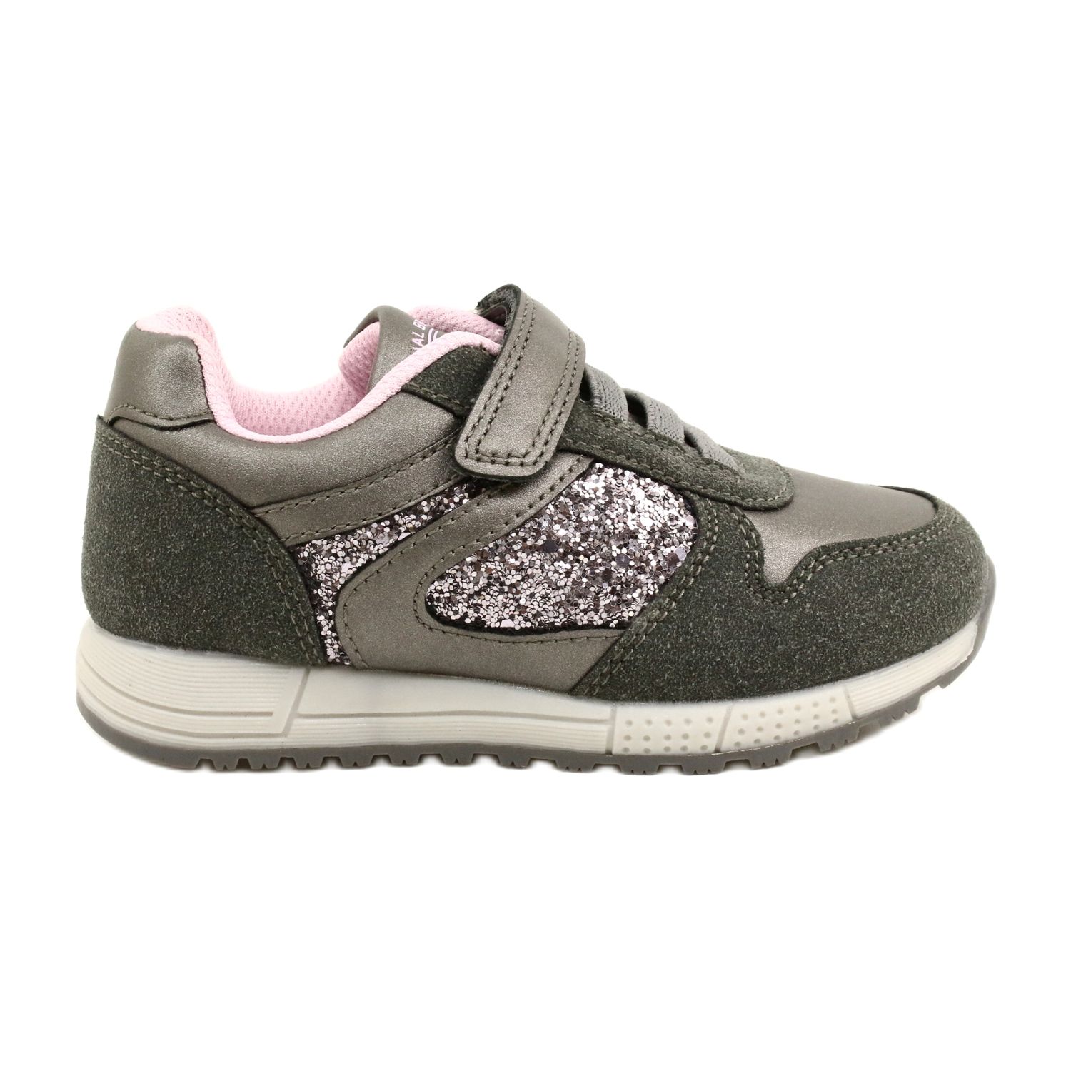 American Club ES40 children's sports shoes - stylish, comfortable and durable footwear for girls. A gray-silver upper with elements of ecological leather combines universal elegance with a modern, girlish accent in the form of a delicate, pink interior. Interesting design will certainly appeal to a small client.