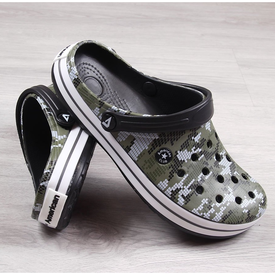 Discover full style and comfort with the American Club men's kroksy camo flip-flops in green. These slip-ons are the perfect choice for men who value both comfort and a fashionable look. Made of high-quality synthetic materials, they provide durability and ease of use.