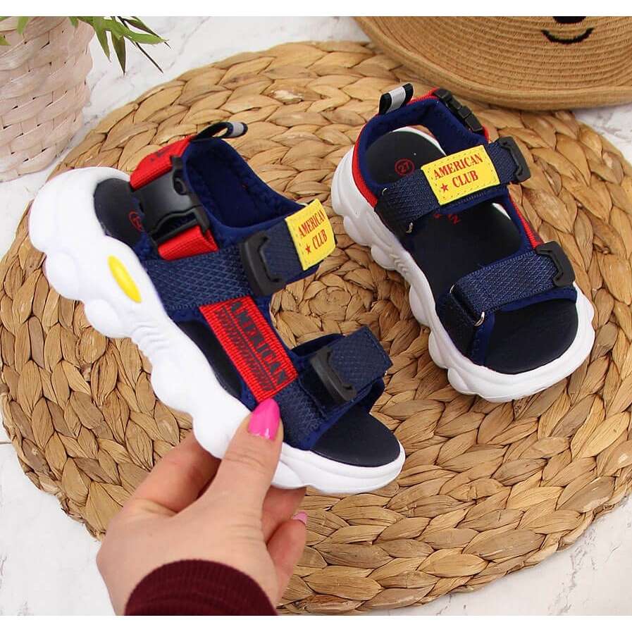 Details: American Club navy blue velcro sandals for boys