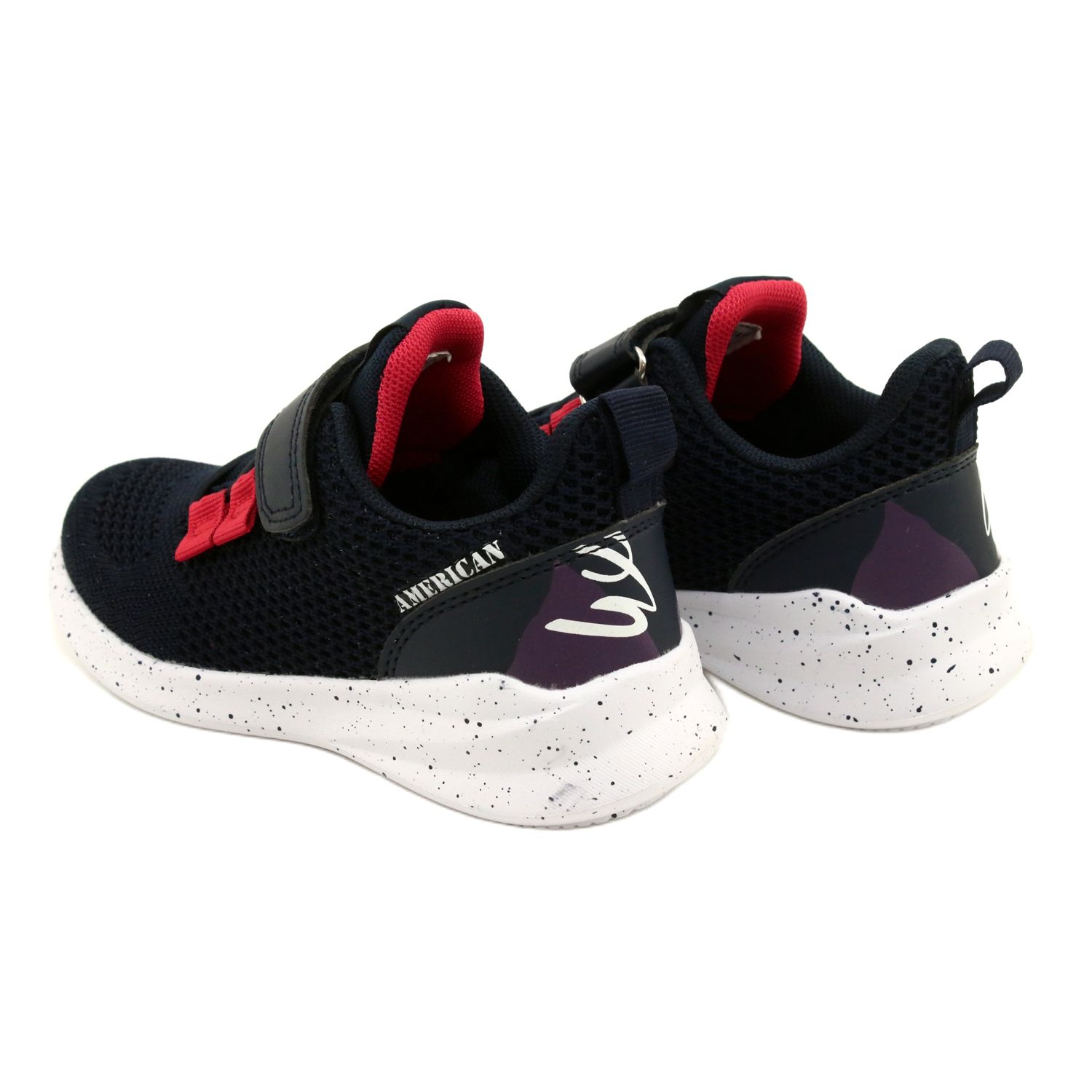 Classic, comfortable and practical sports shoes American Club RD13/22 intended for children. Made of airy fabric (knitwear), they guarantee a good fit and comfort of wearing all day. The universal, navy blue colors with red elements make the shoes appeal to both boys and girls.