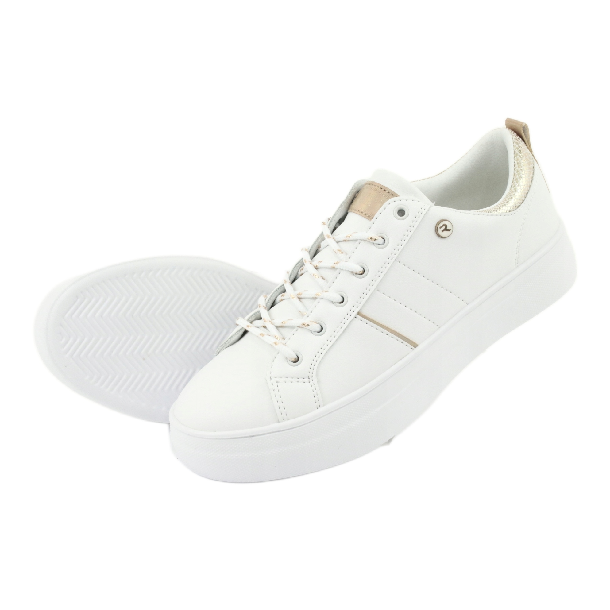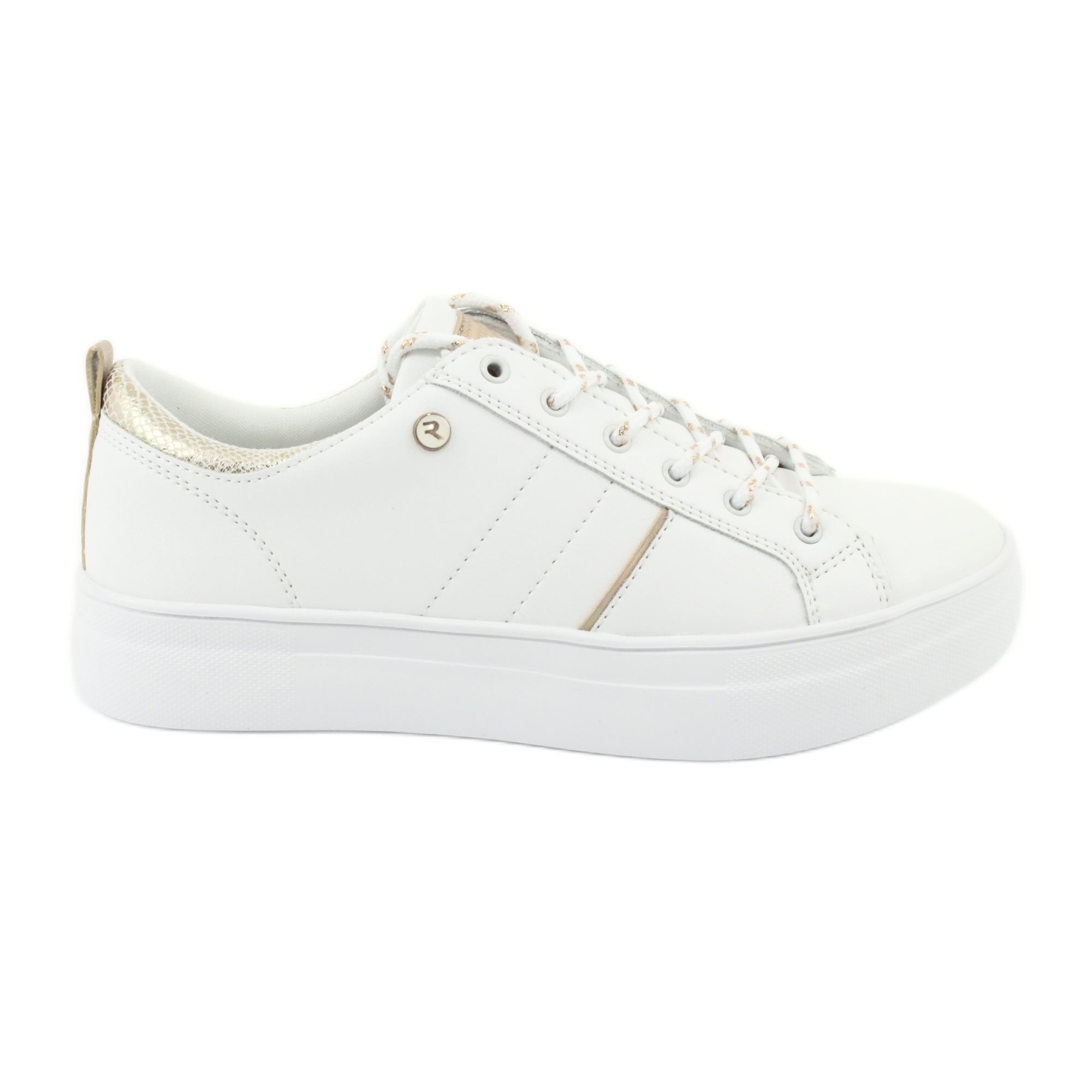 Modern women's sneakers made of high quality ecological leather, which combine a sporty character with fashionable details. The RH09 model is distinguished by elegant golden inserts and delicate yellow accents, and the interior is lined with soft fabric for comfort when wearing. The shoes are embedded on a slightly thicker, white, very light and flexible sole, which ensures good cushioning and comfort every day.