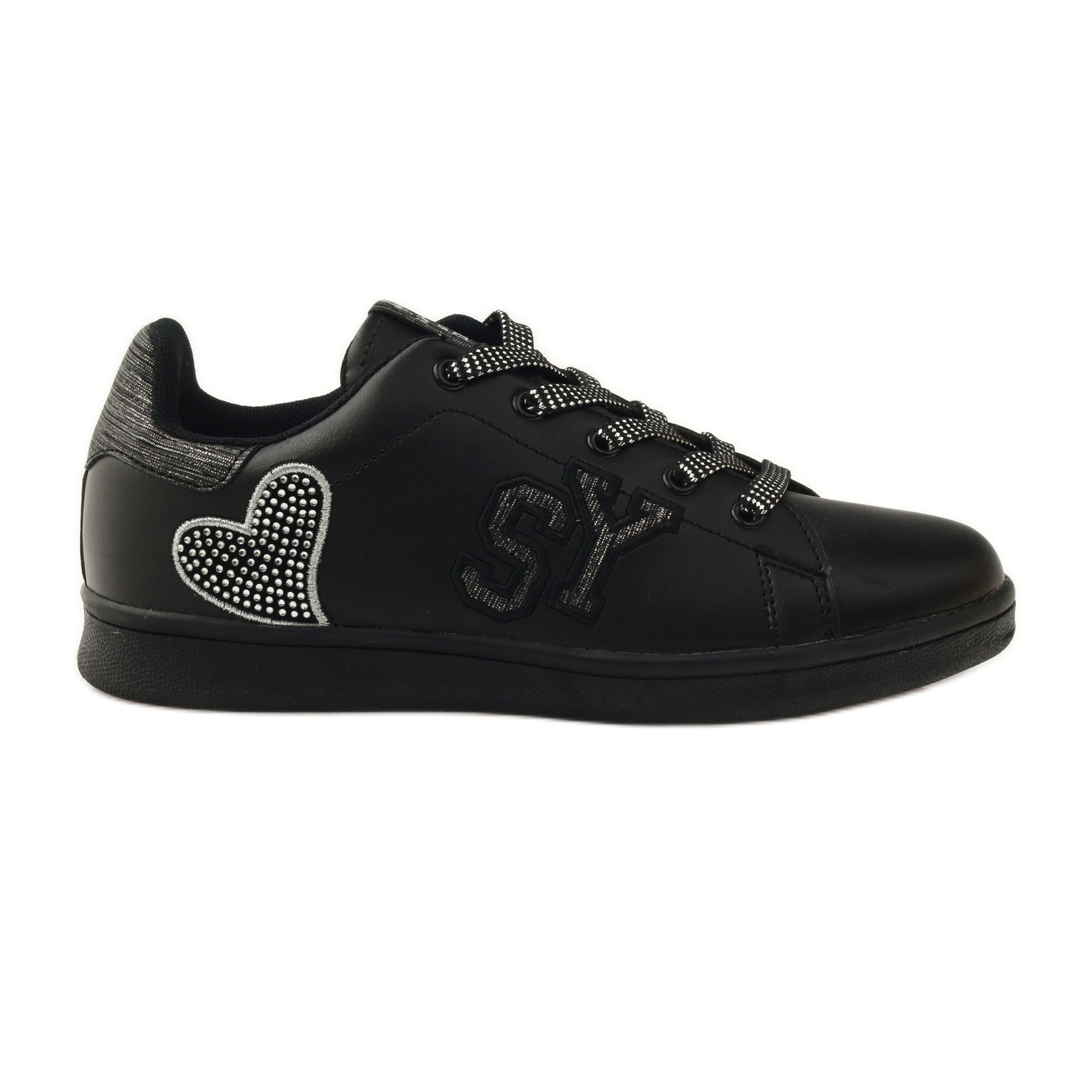 What makes these sneakers unique? Instead of traditional laces, an elegant glitter version threaded through silver eyelets has been used, which adds a subtle touch of class. The upper is decorated with a heart studded with rhinestones, which will surely delight every girl, emphasizing her individual style.
