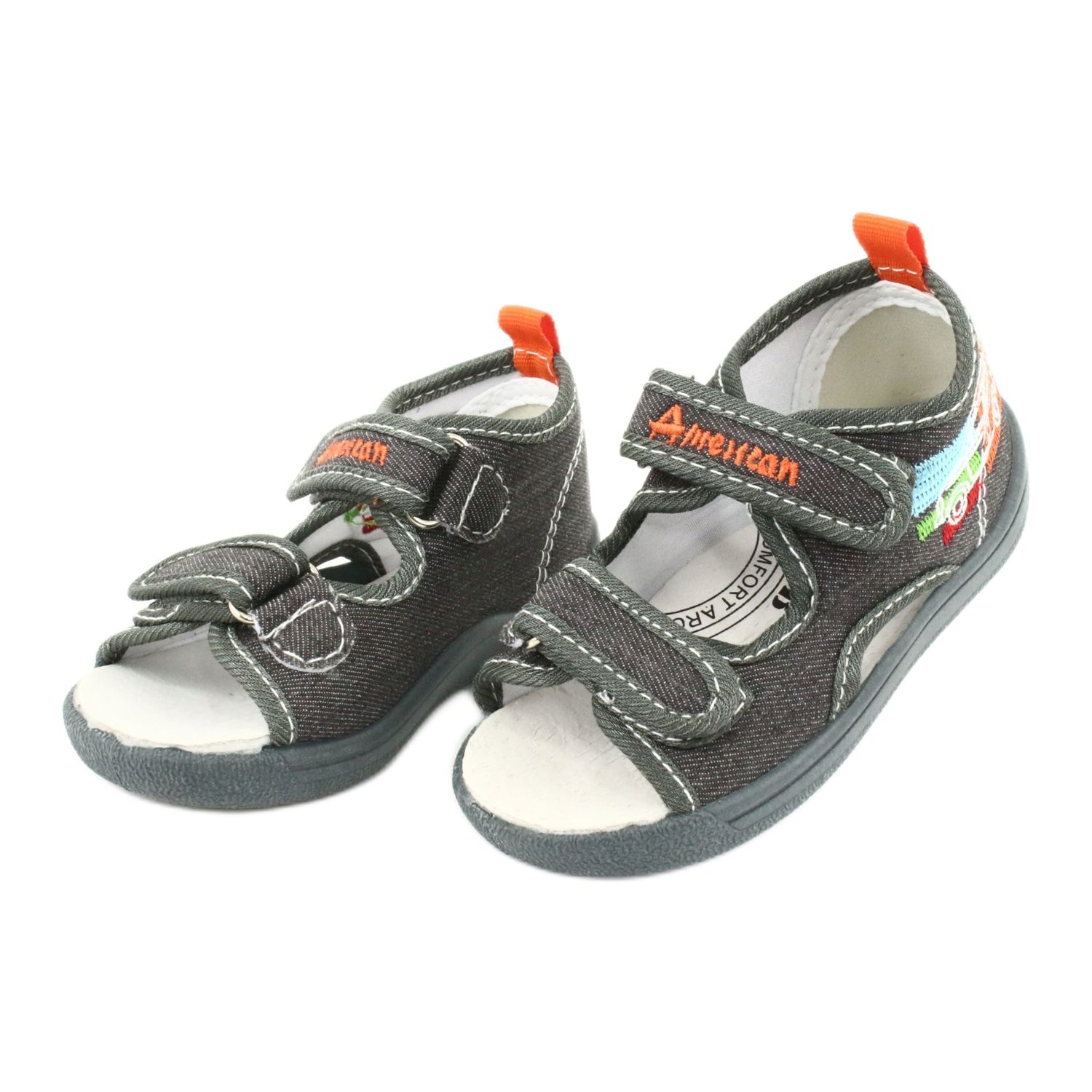 American Club Te46-comfortable and stylish children's sandals in gray-orange colors that will be great in kindergarten, home and in the playground. The upper made of high quality textile material type Jeans looks fashionable and is pleasant to the touch, and the interior lined with textile material cares for the comfort of the toddler. The glued leather insert ensures natural moisture and comfort during wearing, while the elastic sole made of foamed, lightweight rubber absorbs steps and facilitates free movement. The stiff fastener stabilizes the foot, and the practical Velcro fastening allows quick and independent installation and fitting of the footwear.