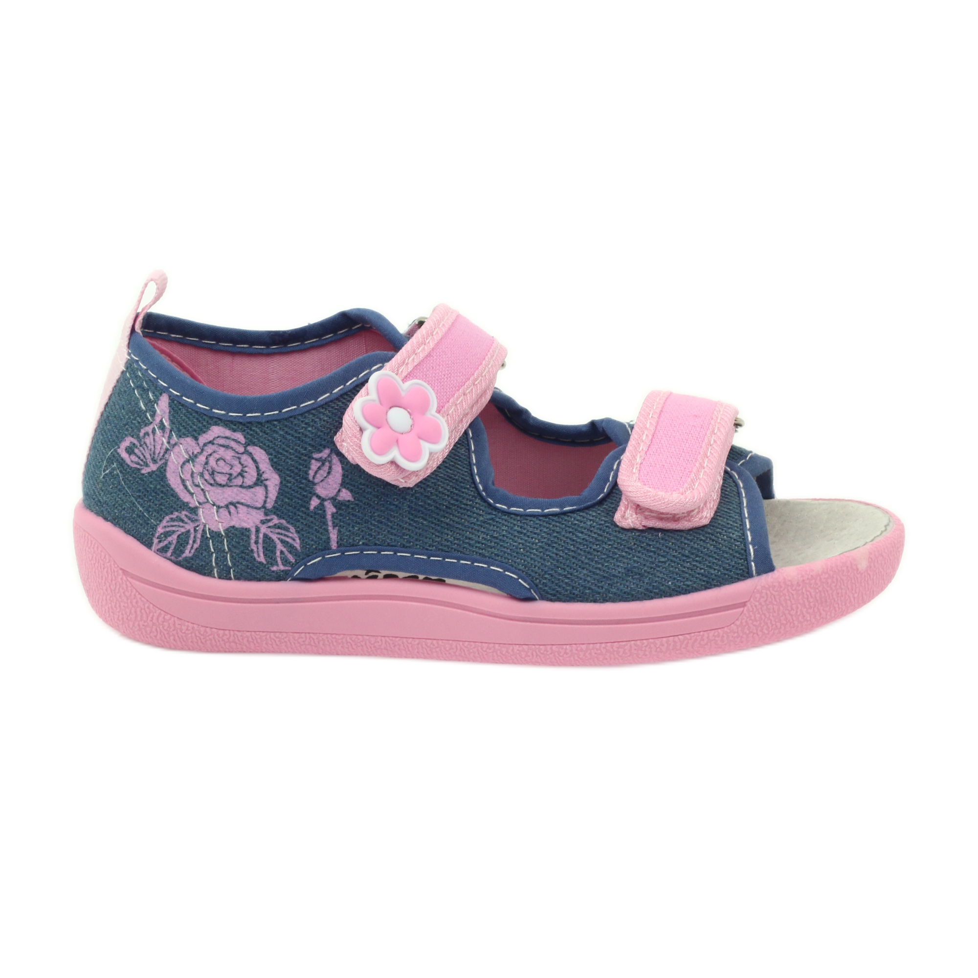We offer stylish children's sandals American Club, model wz.404/2018, which delight with the combination of blue jeans and pink accents. These charming slippers for girls were designed with the comfort and style of little ones in mind.