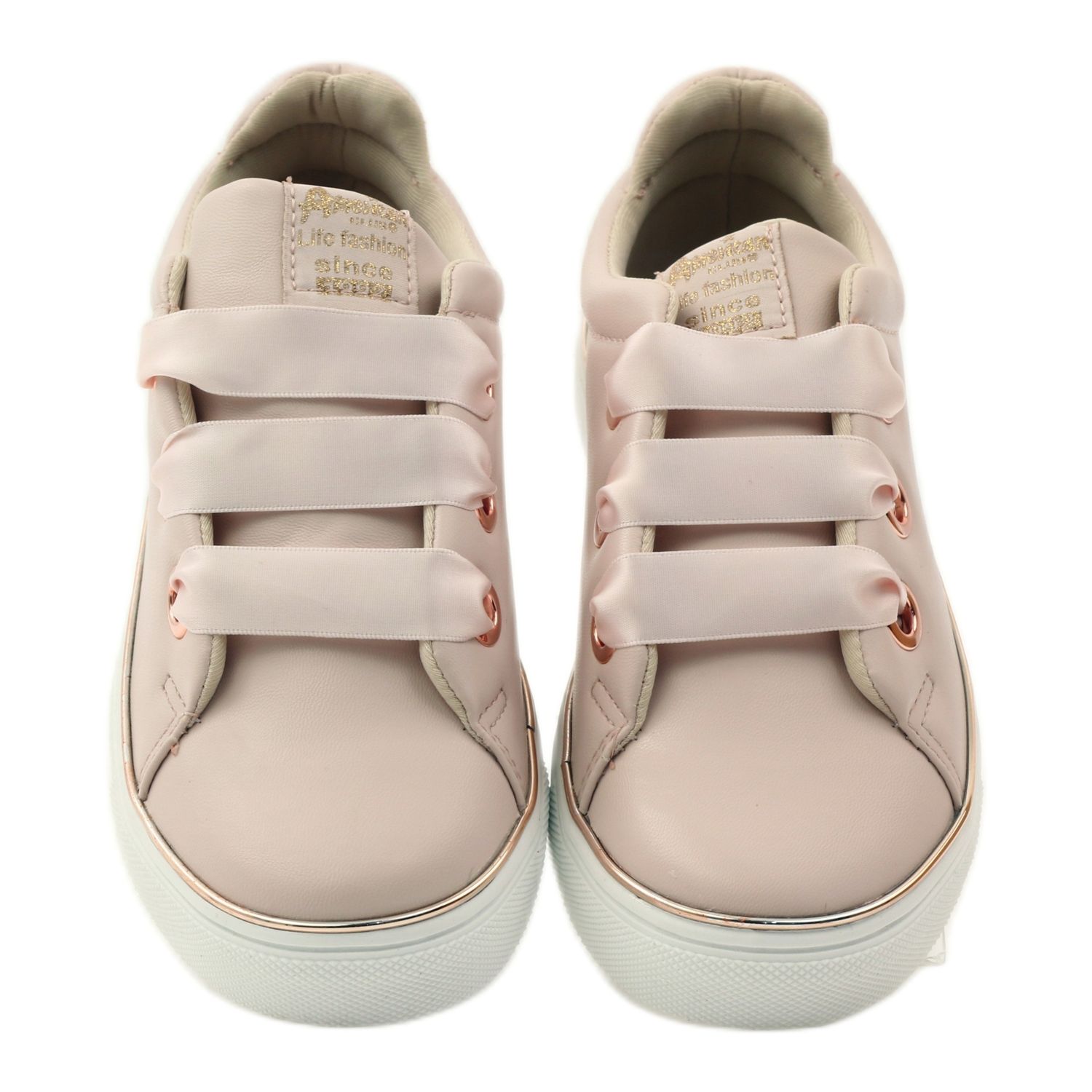 Delicate, girls' American Club sneakers model 17152 in a fashionable pink color are a combination of style and everyday comfort. The upper made of high-quality ecological leather looks elegant, and the unusual satin ribbon threaded through wide eyelets adds a subtle, romantic note to the shoes. The piping around the sole and a slightly thicker, white rubber sole (height 1.5 cm) emphasize the urban, casual character of the footwear.