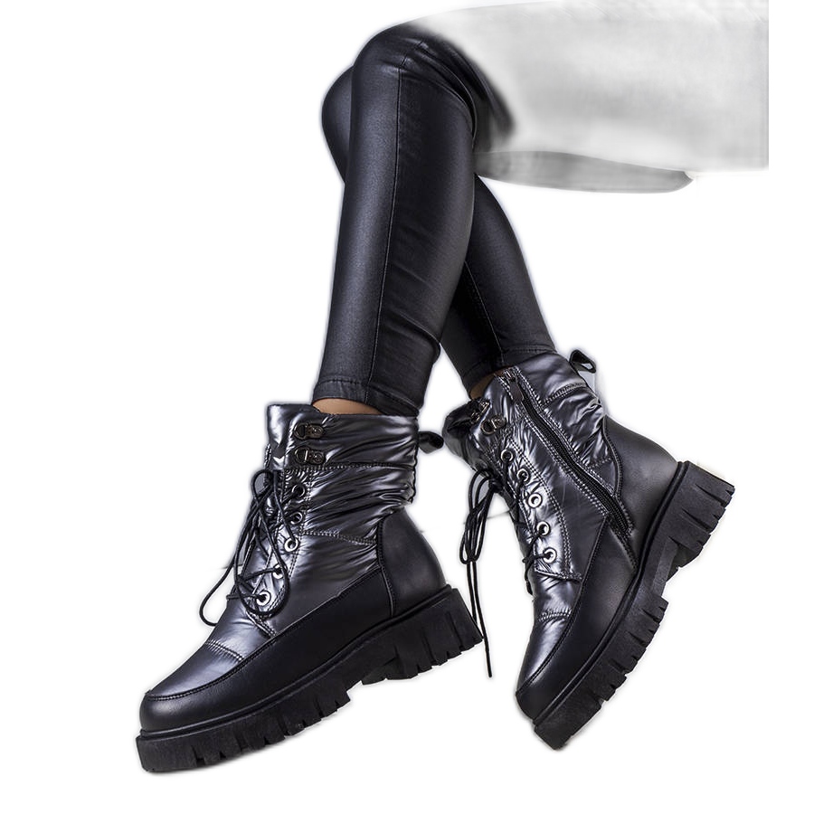 Practical and fashionable women's snow boots, created for longer walks and trips out of town. The upper made of high quality ecological leather combined with material inserts guarantees comfort and durability, and the soft, warm fur in the interior ensures pleasant warming even on frosty days. The shade of the "PiTER" manufacturer is a graphite and black variant with a black sole-universal and easy to stylize.