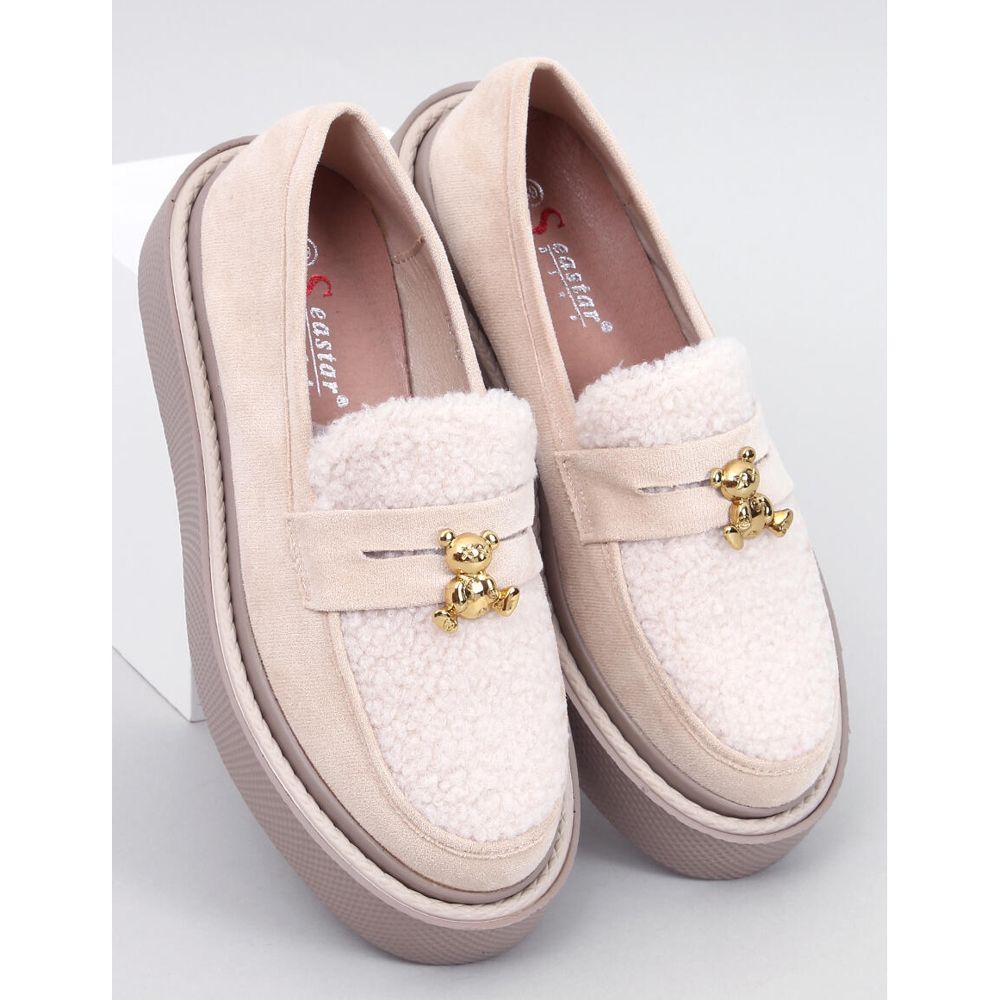 Discover unique loafers on the platform with Anisha Beige lamb! These suede women's loafers are the perfect combination of comfort and style that will be perfect for everyday stylizations. They are characterized by a unique cut, which consists of a soft sheepskin coat and a charming gold teddy bear, giving them a subtle charm.