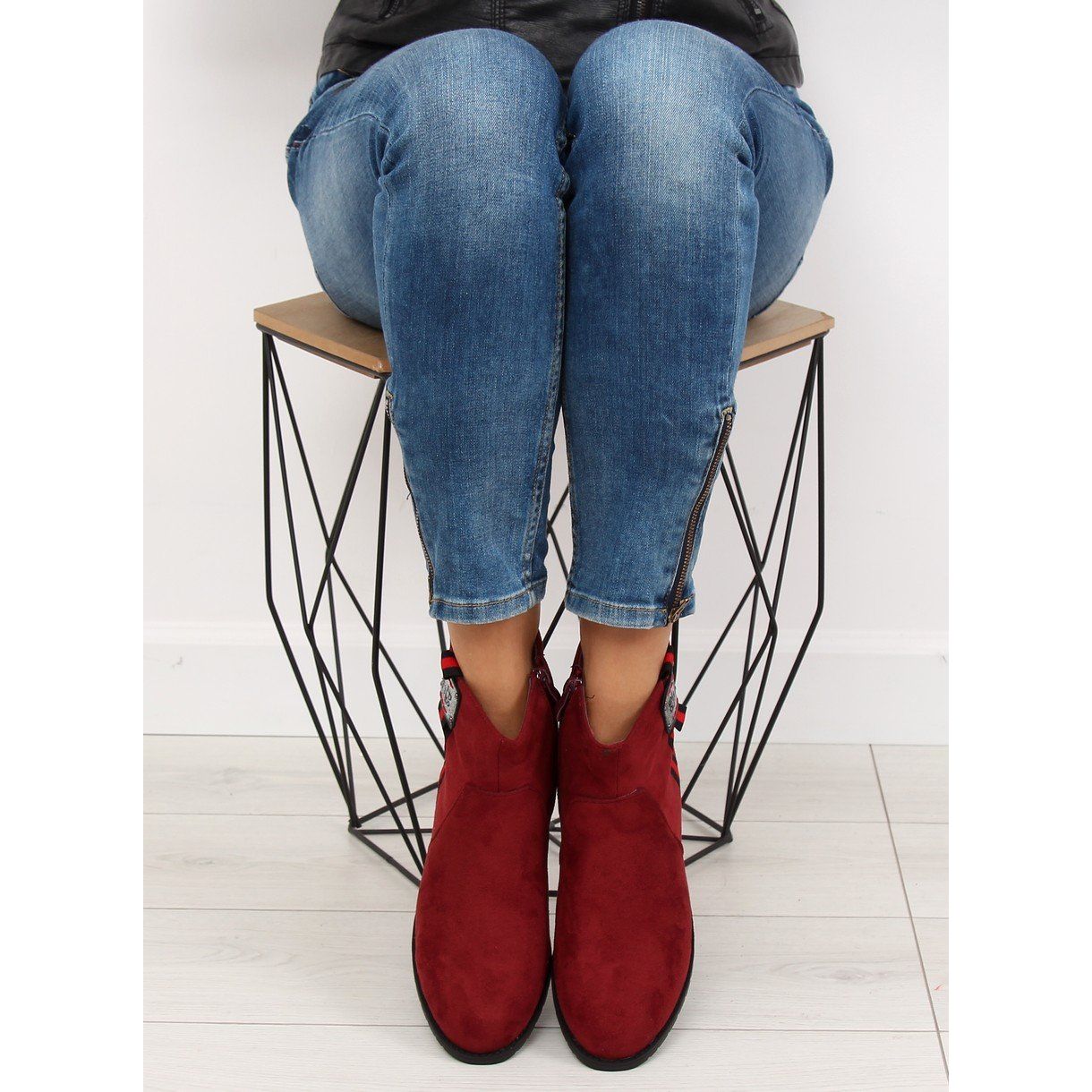 Inna marka Ankle boots suede burgundy 100-913B0-2 Red
