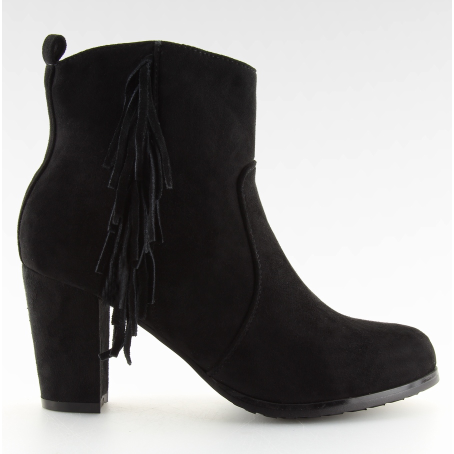JKD-14 Black high-heeled ankle boots with fringes - black suede boho ankle boots