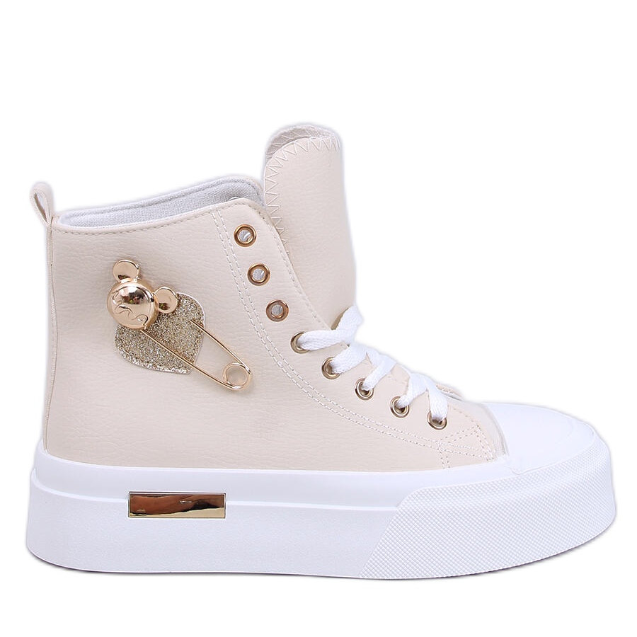 Arenas sneakers blend in perfectly with daily stylizations, ideally suited to both walks and casual meetings with friends. Beige color combined with a white sole means that they match many different outfits, giving them lightness and elegance. Do not wait - enrich your wardrobe with this unique model that will certainly attract your eyes!