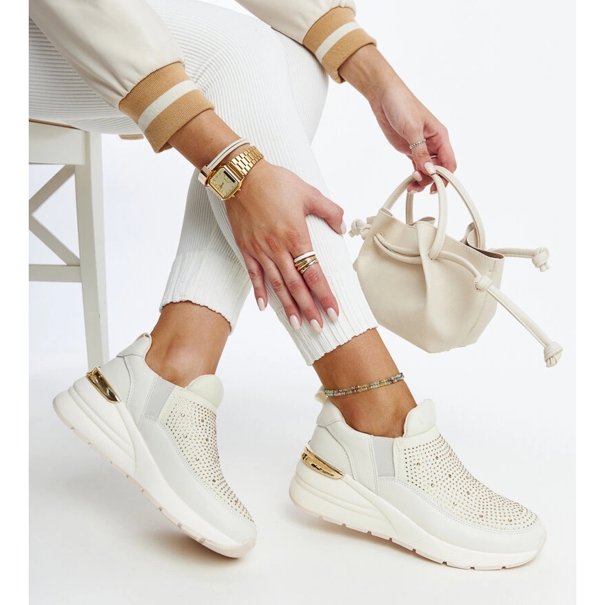 Inna marka Ashleey beige wedge sneakers with rhinestones