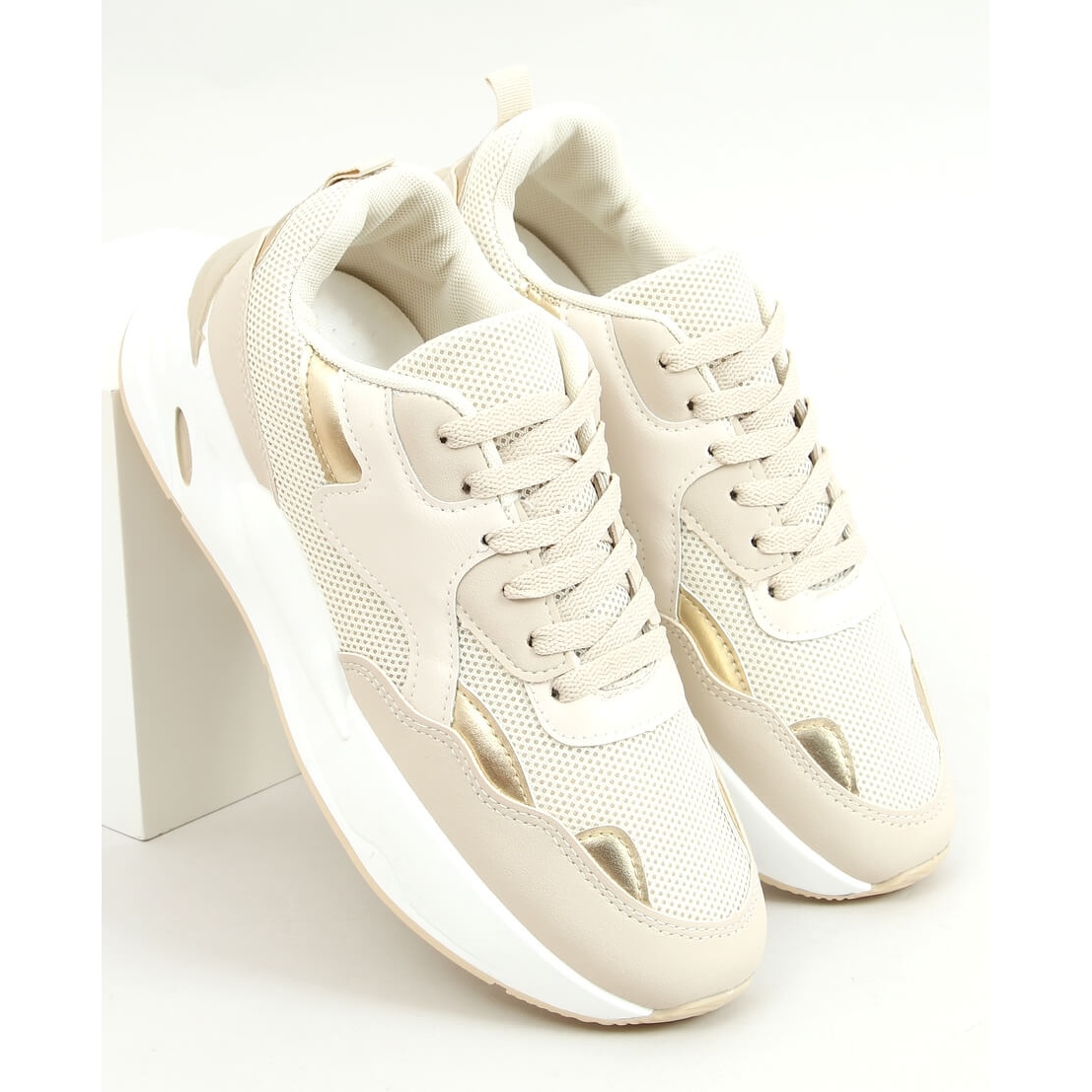 We offer unique Astro sports shoes in an elegant shade of beige with metallic accents. These lace-up women's shoes are characterized by a high sole, which not only adds style but also provides everyday comfort. They are perfect for complementing everyday stylings, combining modern design and functionality.