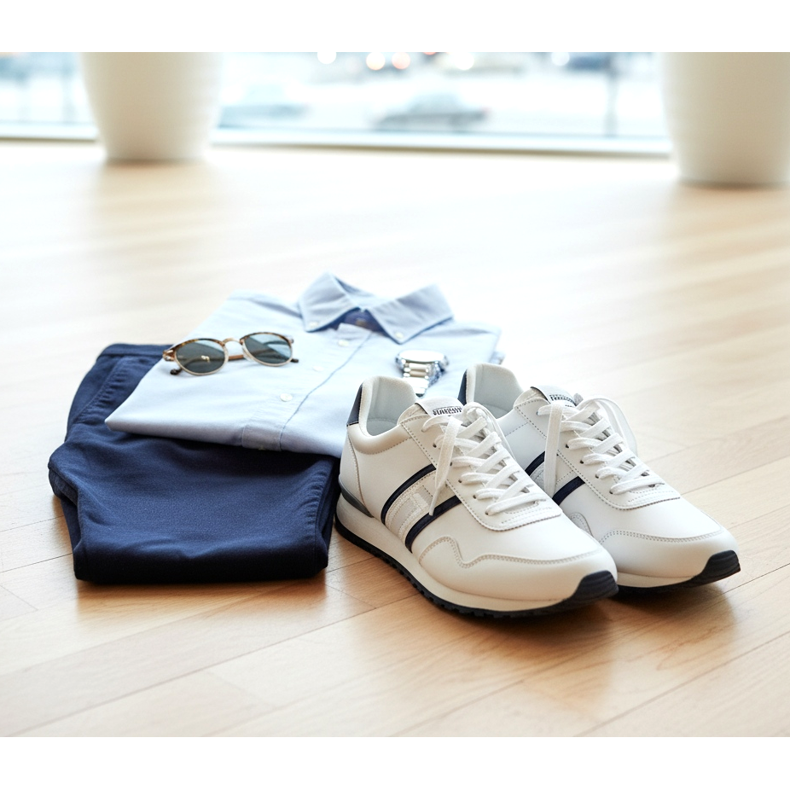 It is also important that shoes are always clean and well-kept. White sneakers require regular cleaning, and canvas sneakers need impregnation before the season. A well-kept shoe is the foundation of every successful athleisure look.