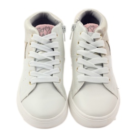 These fashionably designed shoes in white with gold accents stand out with an interesting design that will certainly appeal to many girls. The interior of the shoes is made of textile material, and the leather insole guarantees comfort and convenience when worn.