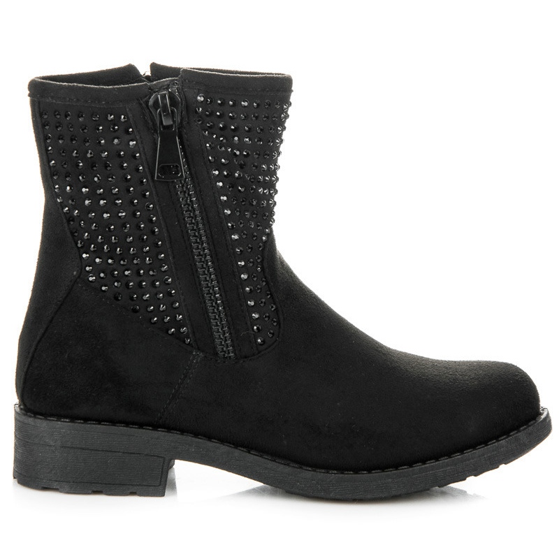 With a flat 5 cm heel, these ankle boots are comfortable and easy to wear, perfect for both long days at work and evenings out. Additional details in the form of rhinestones and studs give them a fashionable, rock accent.