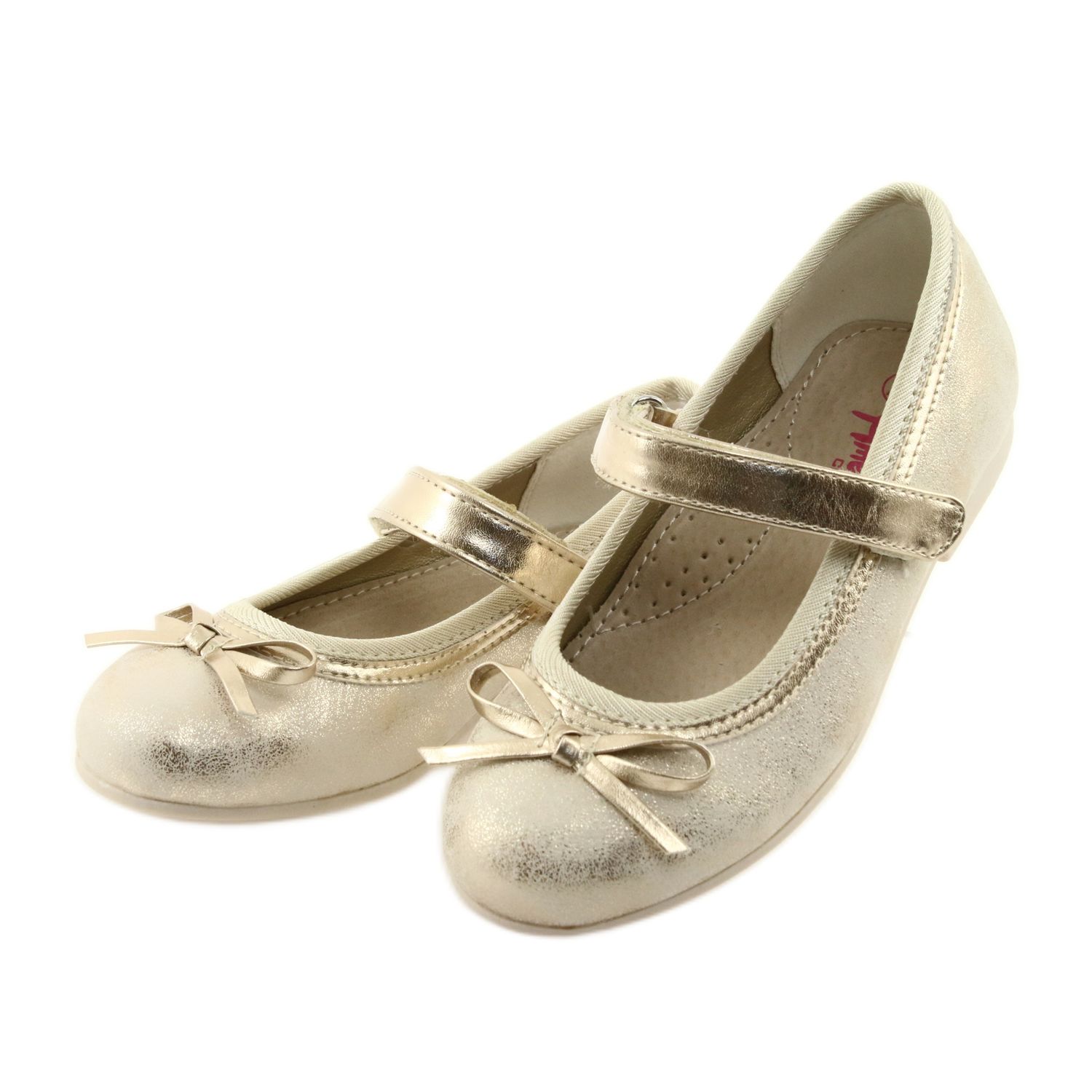 The American Club GC18 bow ballerina pumps are the perfect choice for little elegant ladies! Made of eco-leather in a beautiful gilded beige color, with an additional accent in the form of a gold bow, these shoes combine style and comfort.