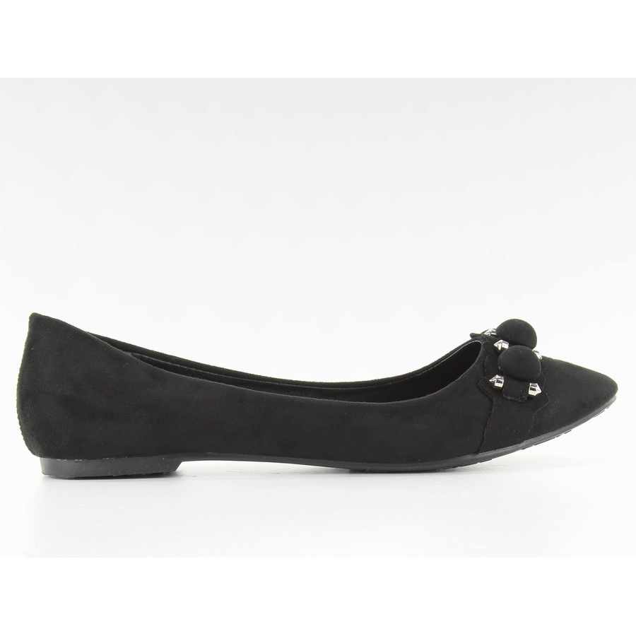 Charming women's ballerina shoes with an almond toe, decorated with a subtle strap with tiny balls. Made of fleshy ecological suede in classic black, they combine style with comfort - perfect for work, meetings and walks around the city.