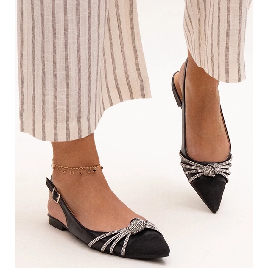 Discover elegance and style with black ballerinas in black, which perfectly combine comfort and fashionable appearance. These unique ballerinas with a pointed toe, decorated with subtle zircons, are the perfect choice for summer days, adding every stylization of style and sophistication.