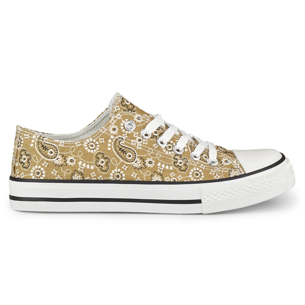 Their beige color and mix of patterns perfectly fit into current trends, and the round toe and flat sole guarantee comfort with every step. The sneakers were designed with everyday use in mind, making them ideal footwear for a walk, shopping or meeting with friends.