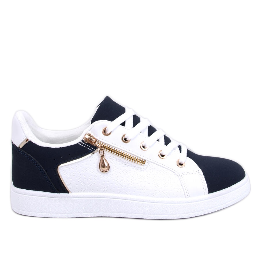 Barges Whitenavy women's sneakers in white is an ideal proposition for women who want to combine a fashionable look with comfort. This two -color model is distinguished by subtle pressing and elegant golden accessories that will give every stylization an original character.