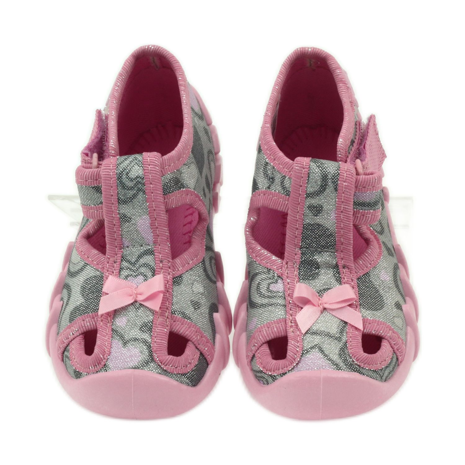 Befado 190P084 sandal slippers are a great choice for little girls who value comfort and a fashionable look. The product of the Polish brand Befado combines high quality workmanship and attractive design. Gray color with shiny thread and a charming bow makes these slippers fit perfectly into the latest children's trends.