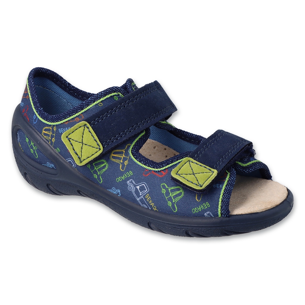 Children's sandals Befado 063x016 are a great choice for small boys who want to enjoy the comfort and safety of every adventure. Their dynamic, blue color with a car motif will certainly attract the attention of both children and their parents.