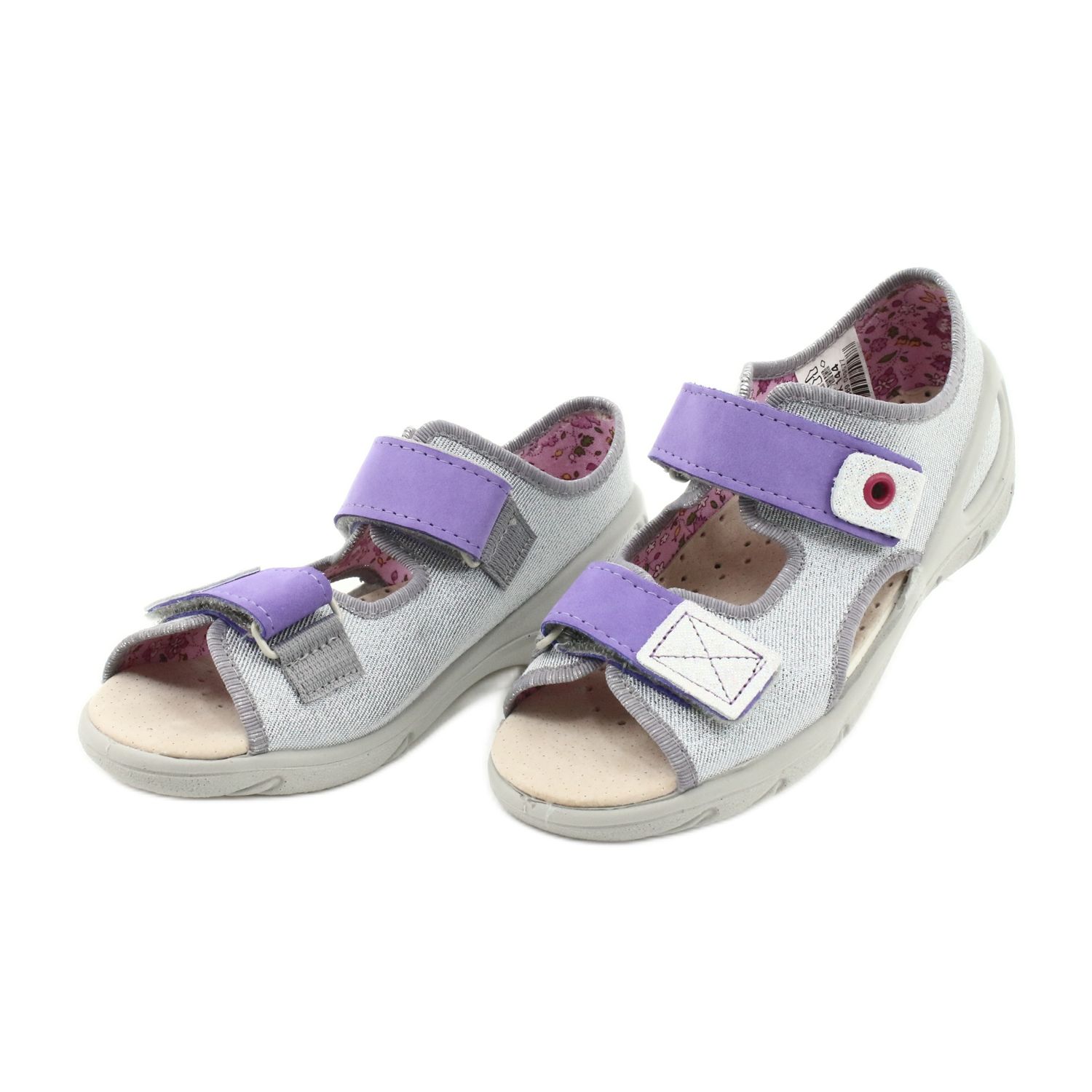 Befado 065X144 children's sandals are the perfect choice for summer days for your little girl. Made of high-quality materials, in purple, silver and gray colors, they provide not only an attractive appearance, but also comfort of use. Their unique design with a higher heel and wider structure effectively counteracts the formation of flat feet, taking care of the health of the youngest feet.