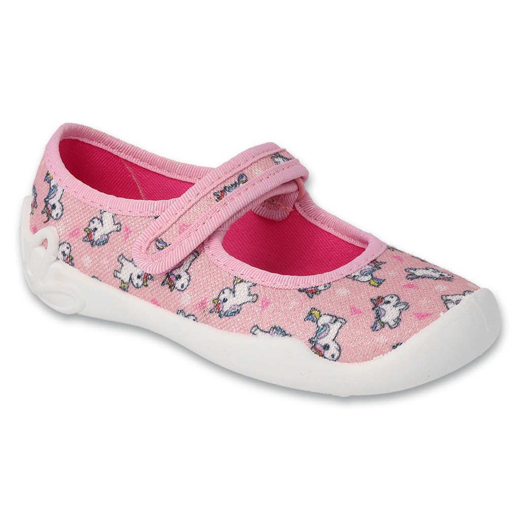Befado 114x534 children's slippers in pink are a great choice for young fashionistas. Made of high quality fabric, they provide comfort and comfort of wearing all day. Their rigid heel stabilizes the foot, which is extremely important for the proper development of children's feet.