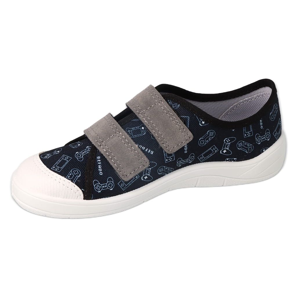 Befado 772Y001 is children's shoes designed for boys. They are made of high quality black fabric with an additional gray accent. The partially stiffened heel provides excellent support for the foot, and practical Velcro facilitates quick and easy putting on and taking off shoes. The product has a healthy footer certificate confirming its beneficial impact on the development and proper functioning of the child's feet.