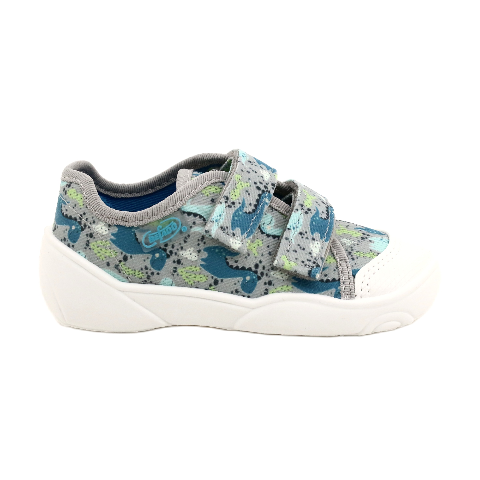 **Befado children's footwear 907P156 Dino** is the perfect choice for little explorers! These colorful, blue, gray and green sneakers from the Maxi collection are designed for the comfort and safety of children's feet in sizes 19 to 26.