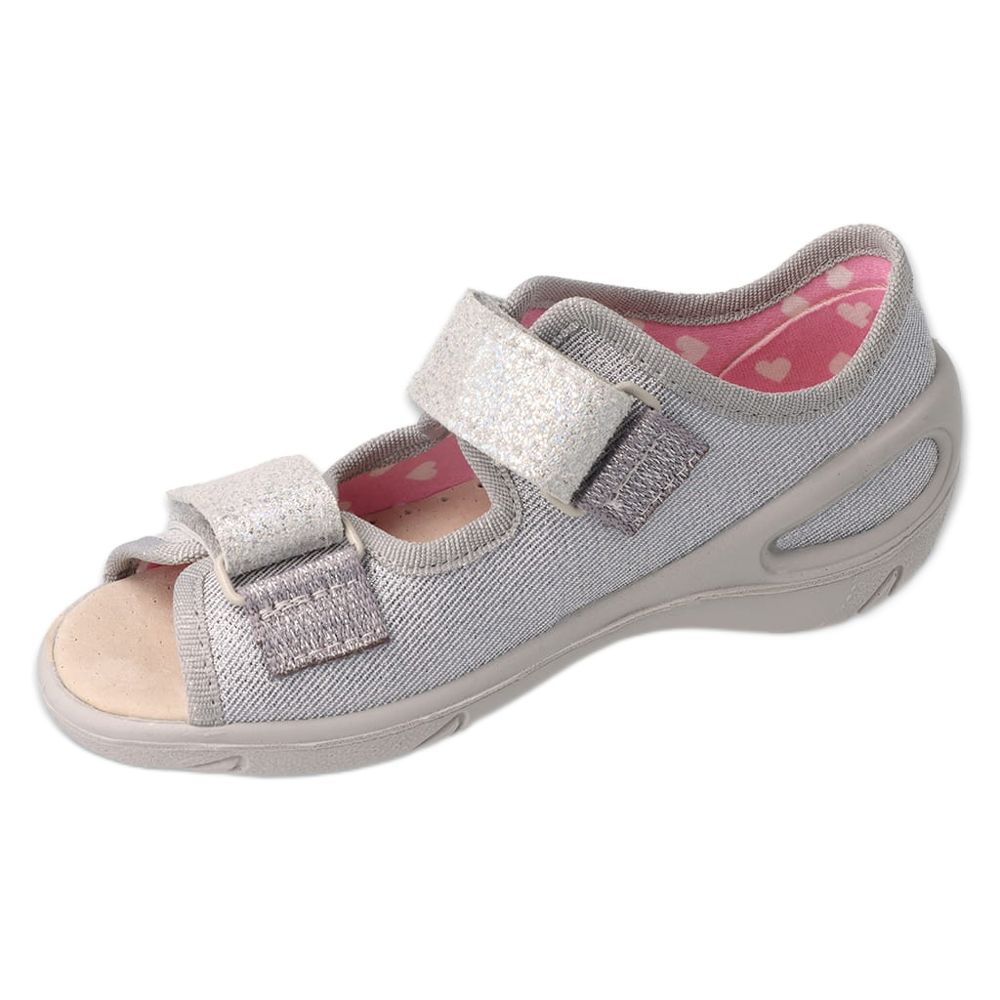Befado pu 065X179 children's sandals in a beautiful silver color are the perfect choice for little feet. Thanks to the carefully designed upper made of breathable cotton fabrics and high-quality shoe fabrics, the sandals provide excellent ventilation, which is especially important on warmer days.