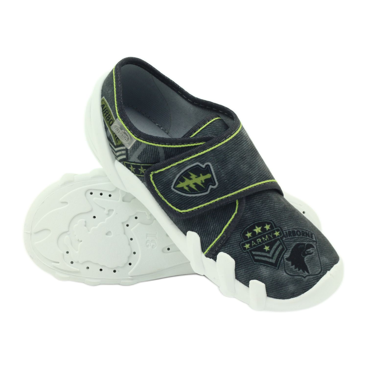 Discover the perfect slippers for your child – Befado model 273Y241 ARMY AIRBORNE. These extremely functional sneakers in black, grey and green are a perfect combination of comfort and fashionable design. Thanks to the Soft-B system, they provide increased walking comfort and effectively protect the feet on uneven terrain, absorb micro-shocks, and reduce the pressure felt by the feet.