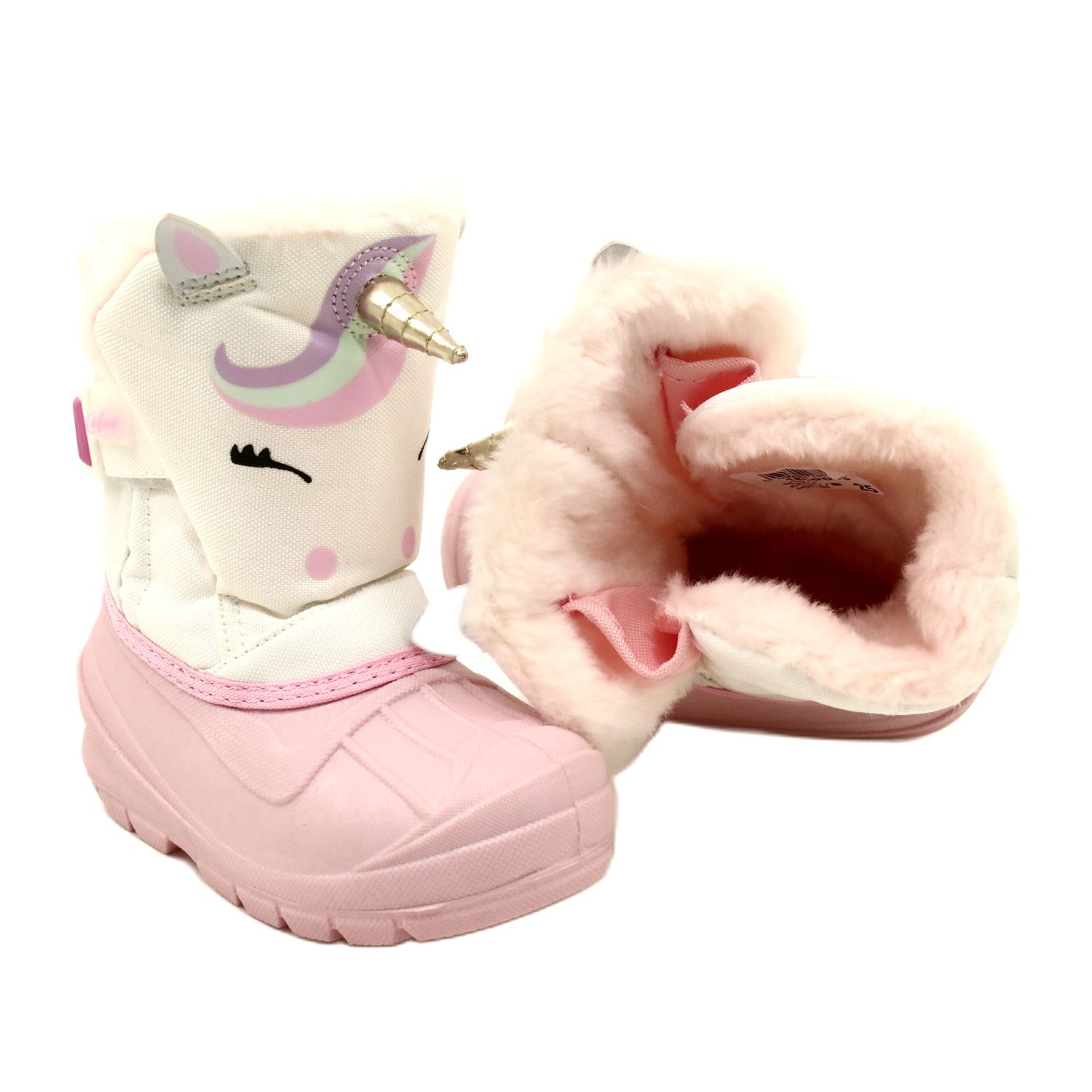 Charming and practical snow boots of Befado created for the youngest lovers of winter games. The Velcro model makes it easier to quickly put on and adjust, and the insulated interior with fur provides heat and comfort even on colder days. The thicker, rubber sole with the tread guarantees good adhesion during walks in the snow.