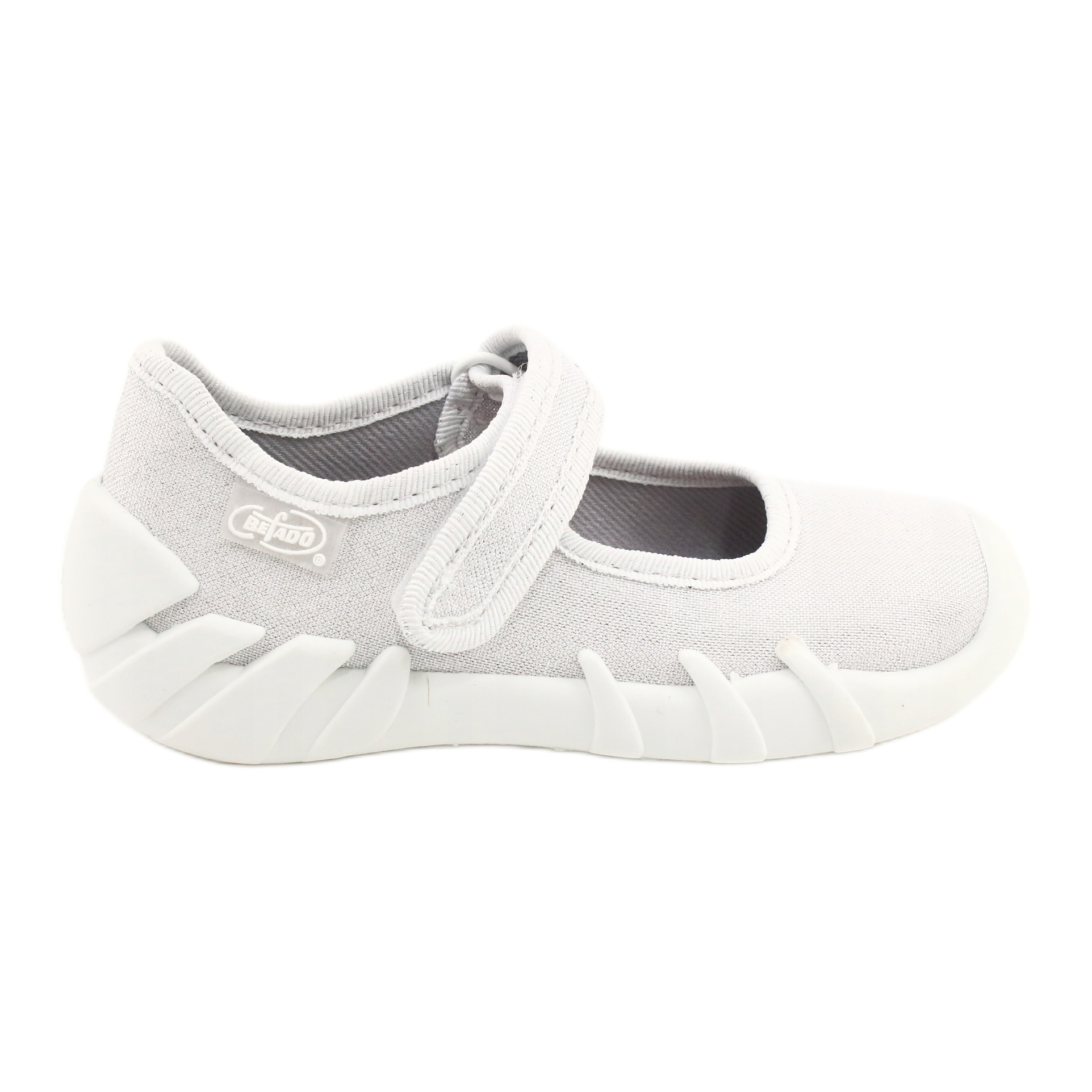Discover the unique Befado Speedy 109P222 children's shoes in silver with grey accents, created with little princesses in mind! This limited collection was created in cooperation with Monika Jaskólska, founder of the "Nie być, nie pomaga" foundation, whose aim is to support child psychiatry. By buying these slippers, you support a noble cause - from every pair sold, 1 złoty goes to help children.