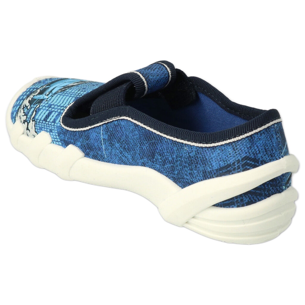 Children's slippers Befado 290x270 in blue with a car motif is the perfect choice for small boys who love motoring. These comfortable and healthy footwear was designed for active children, providing them not only comfort, but also adequate foot support. Thanks to the rigid fastening and the "Healthy Foot" certificate, slippers are ideal for developing children's feet.