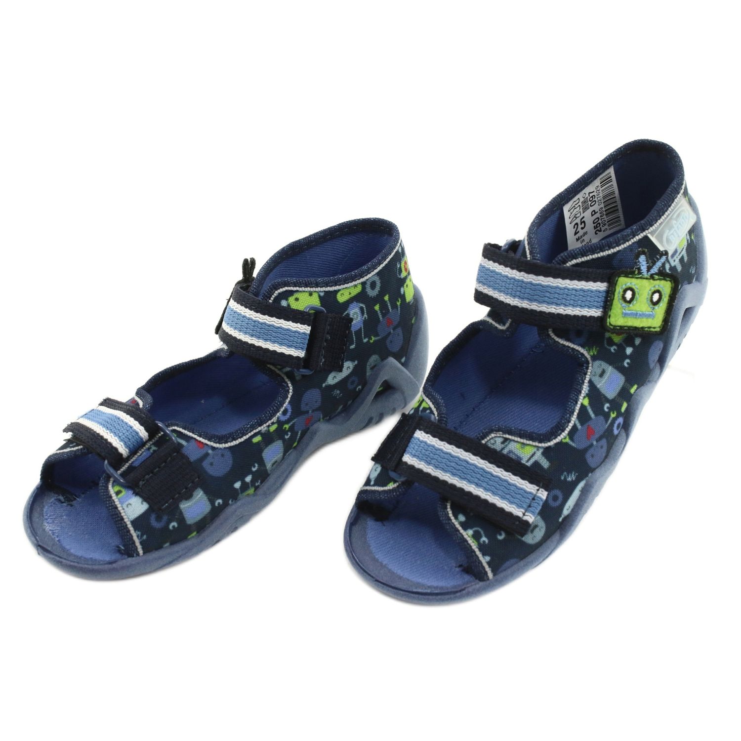 Befado children's slippers for Velcro 250p097 - navy -blue (with green accents)