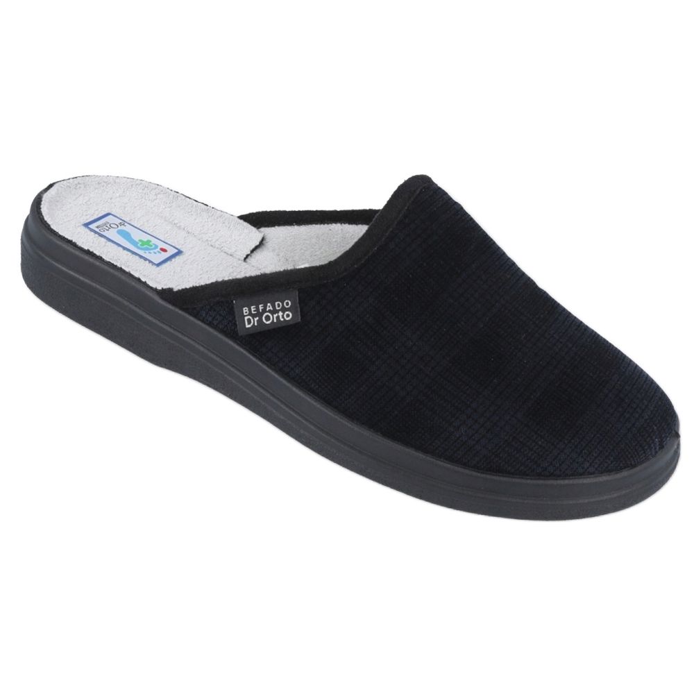 Discover the comfort and support offered by the Befado men's slippers model 125M010 in a fashionable navy blue color with a check pattern. These unique slippers, created by the Polish manufacturer Befado Dr. Orto, are the perfect choice for men who care about the health of their feet.
