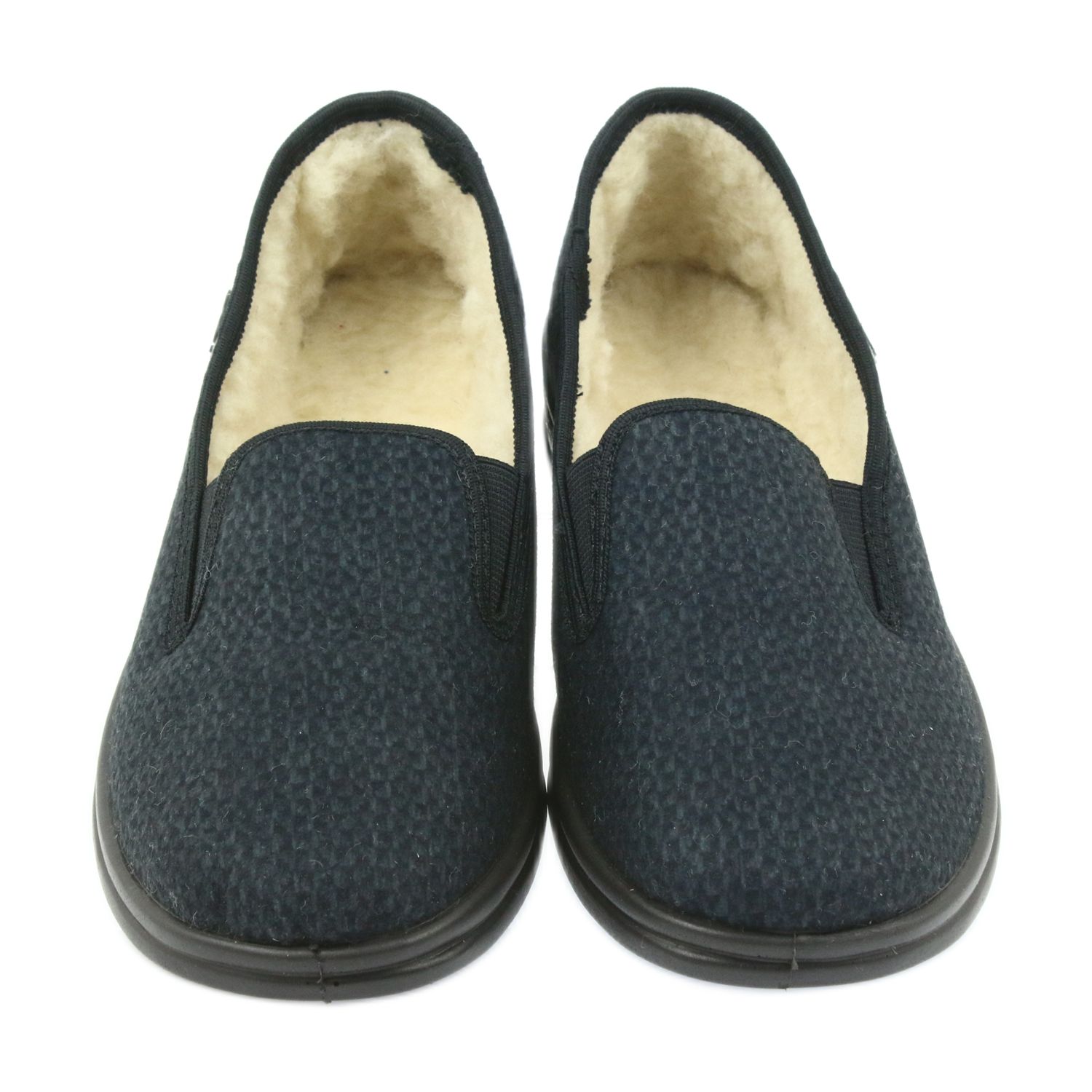 Men's shoes Befado pu 096M090 in gray and navy blue are the perfect choice for winter days when feet need special comfort and warmth. This model is distinguished by a fur lining that effectively protects against the cold, guaranteeing a pleasant feeling of warmth throughout the day.