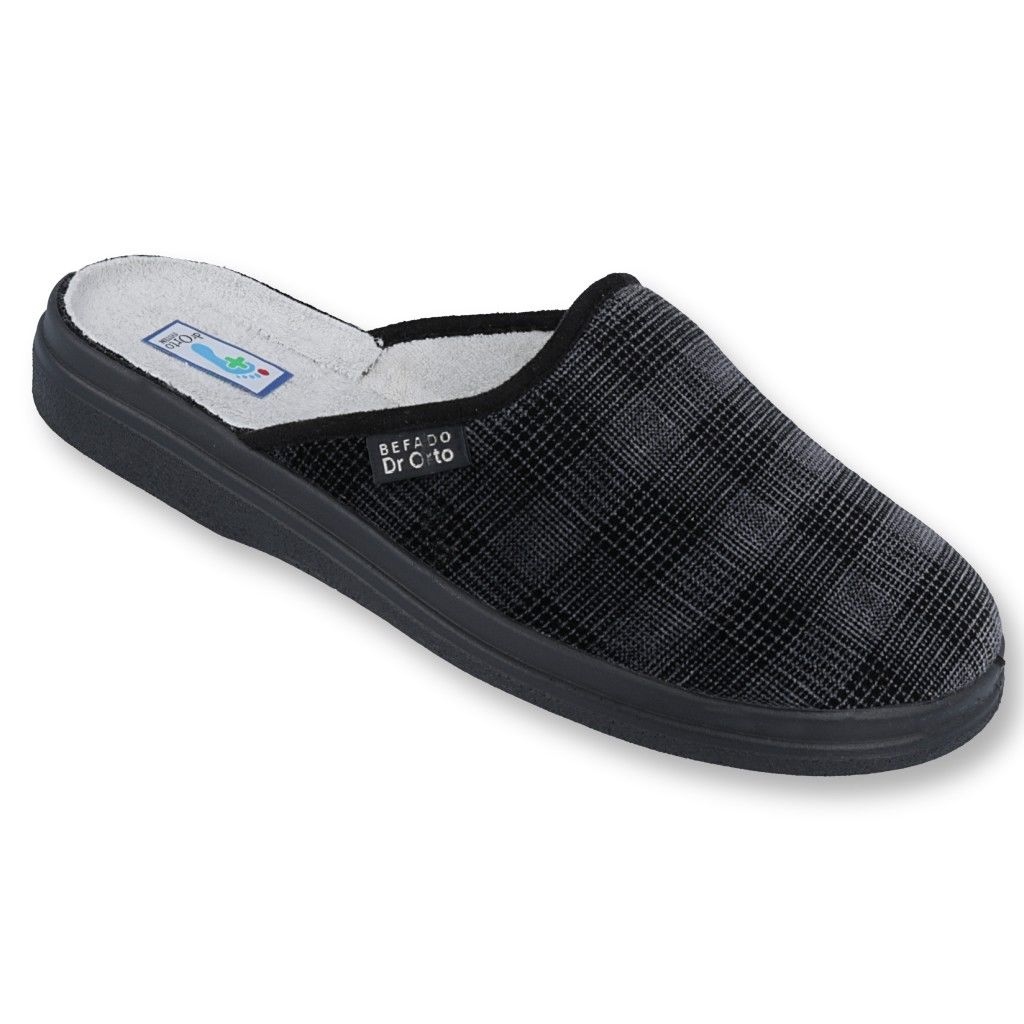 Befado pu 125M011 is not only an effective design with a dominant check pattern, but also practicality, thanks to the slide-in fastening. Perfect for wearing at home, they are also easy to store, they come in an aesthetic manufacturer's packaging.